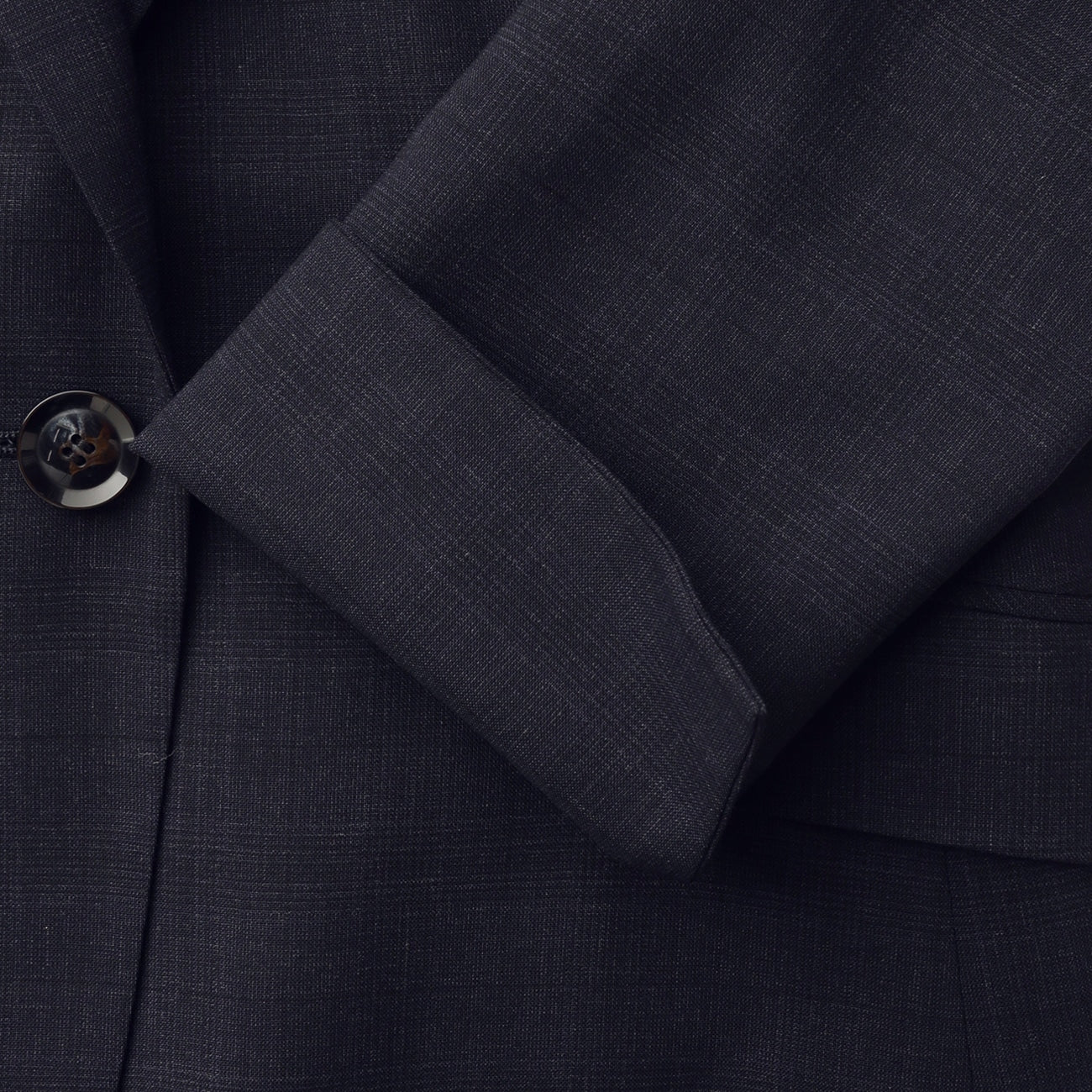 Tailored, 1-button, half-lined, return cuffs, chest pocket, waist pocket, inner pocket