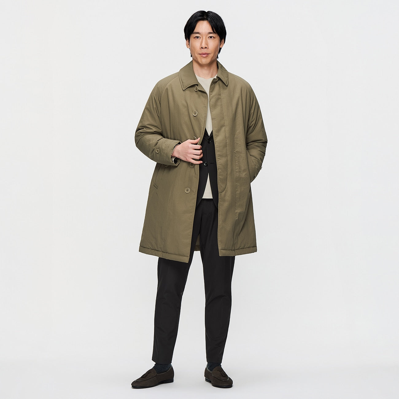 Water-Repellent Padded Balmacaan Coat