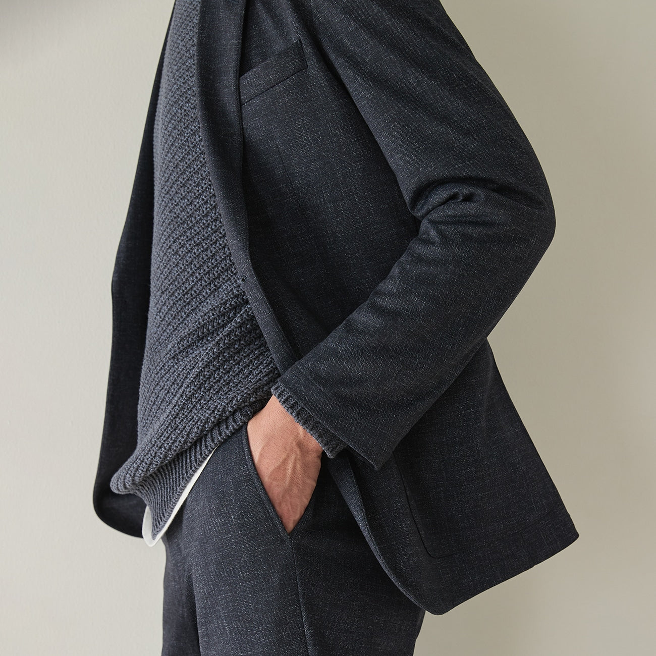 Next-generation "THE THIRD SUITS" denim-like jacket for versatile styling.