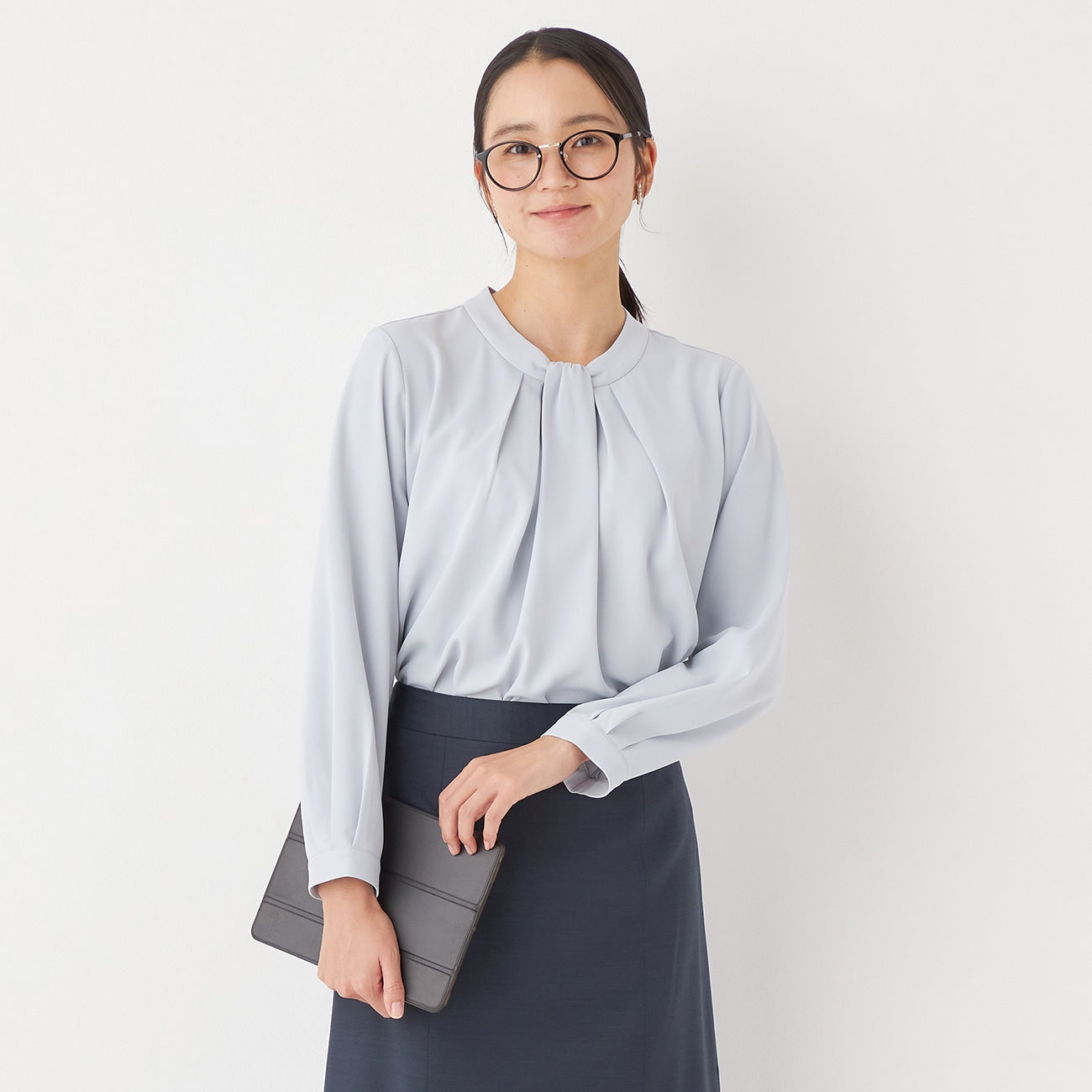 Bowtie style blouse with tuck design for an elegant look.