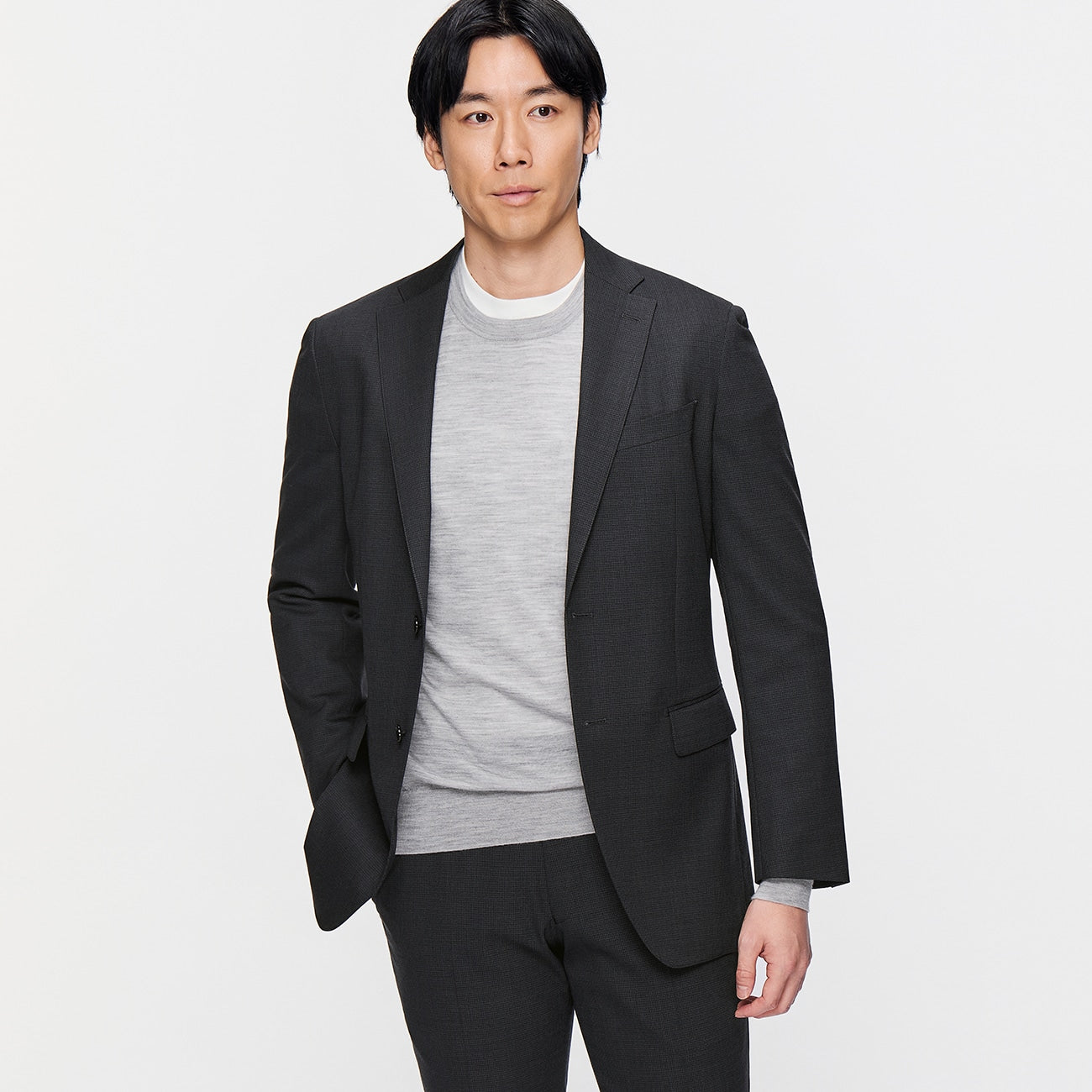 A hybrid blend of high-wool and super stretch polyester. Features an expressive texture distinct from suits for a sophisticated casual style.
