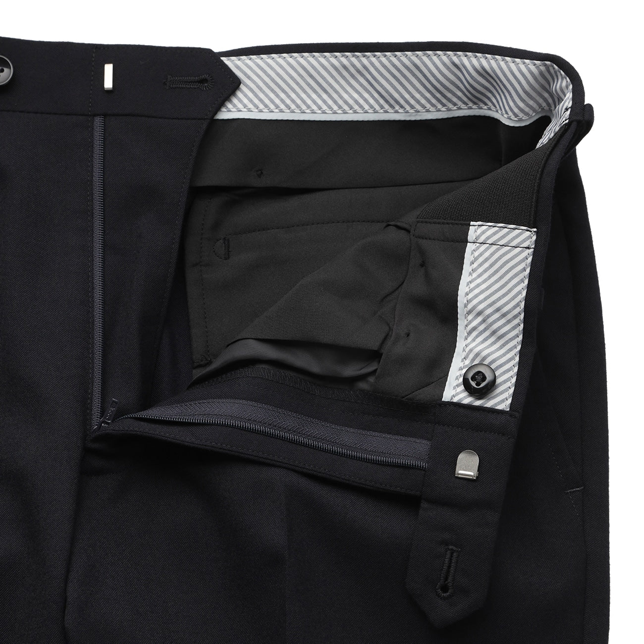 These slacks use a high-quality, high-wool blend milled material perfect for winter. The fabric offers a warm look and elegance, supporting a sophisticated style for business or days off.