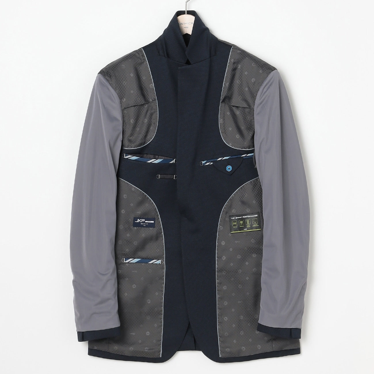 ・西装外套:2颗钮扣、背开中叉、袖口假扣眼、半衬里。