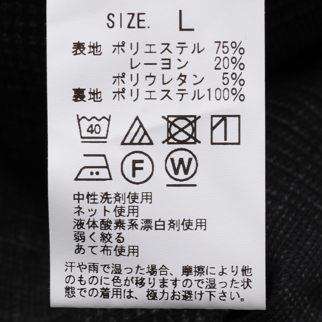 外層布料:聚酯纖維75%、嫘縈20%、聚氨酯5%