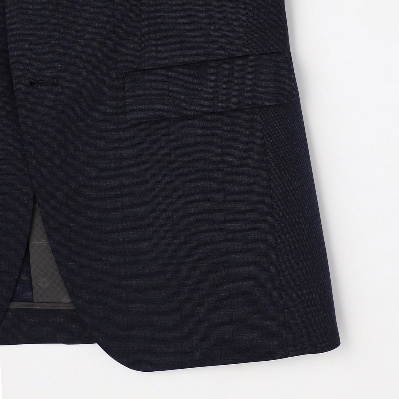 Wool Blend Windowpane Suit with Side Adjuster - Navy