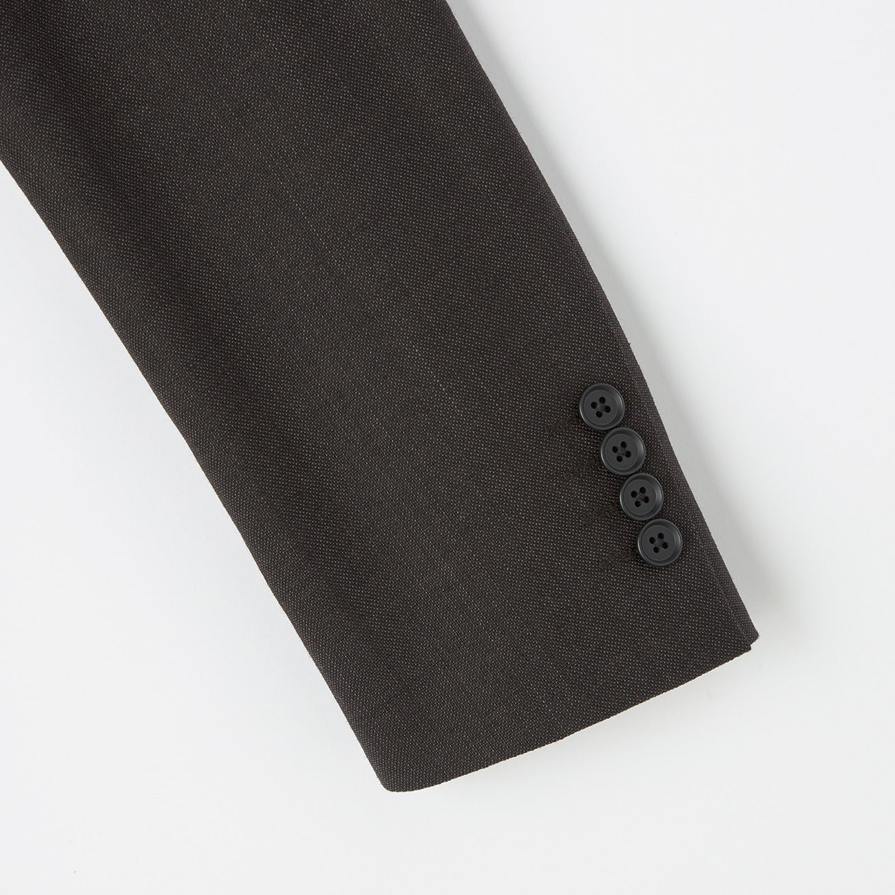 - Jacket: 2-button closure, center vent, non-functional buttons, half-lined. Pants: flat front.