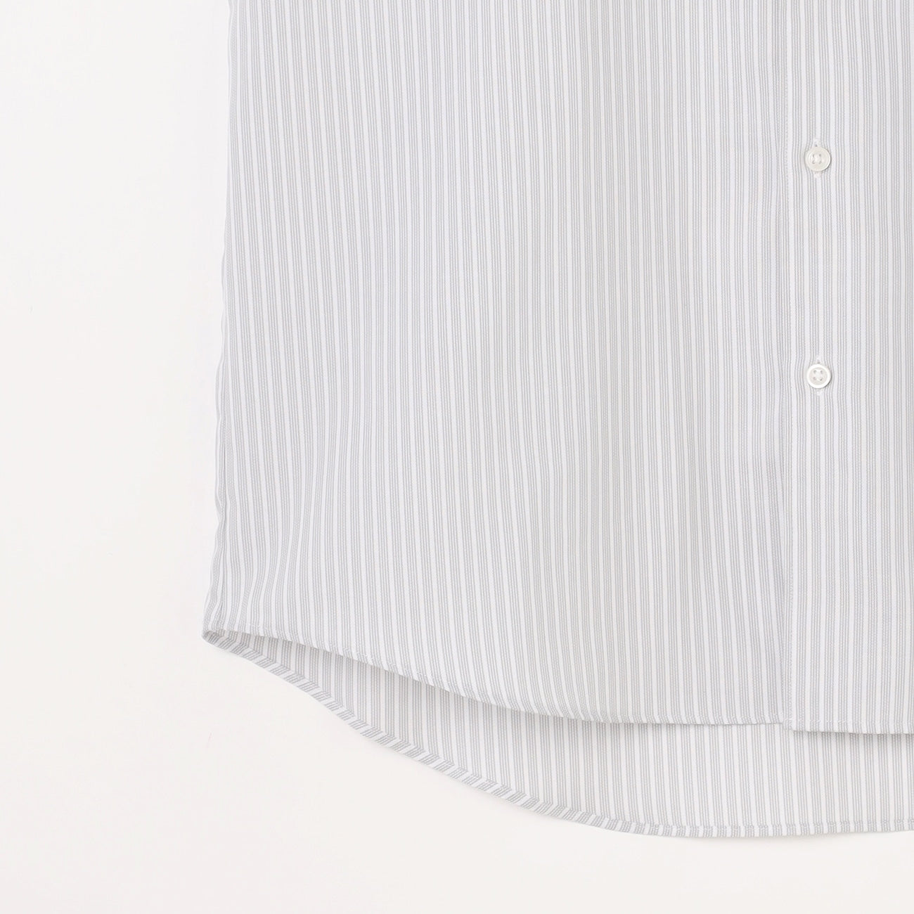 Business Casual Non-Iron Stripe Band Collar Shirt - Gray