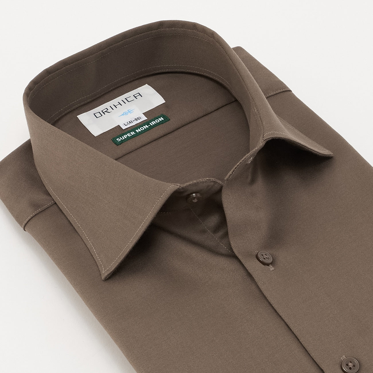 Super Non-Iron Cotton Spread Collar Shirt - Brown