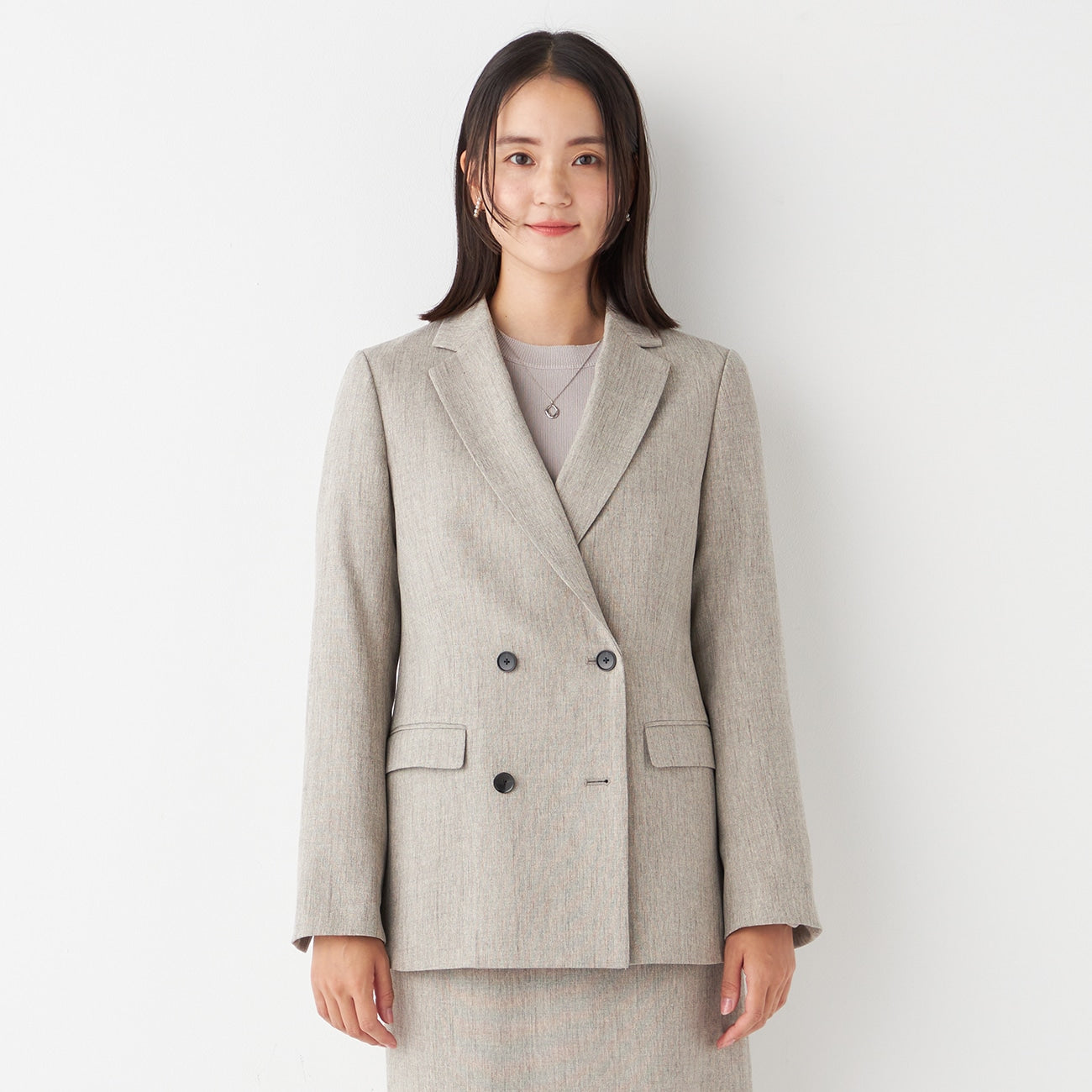 - A jacket for a matching set with a heathered, wool-like appearance. It's versatile enough to wear on its own and attractively pairs with any color.