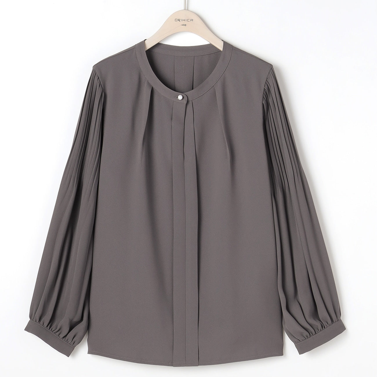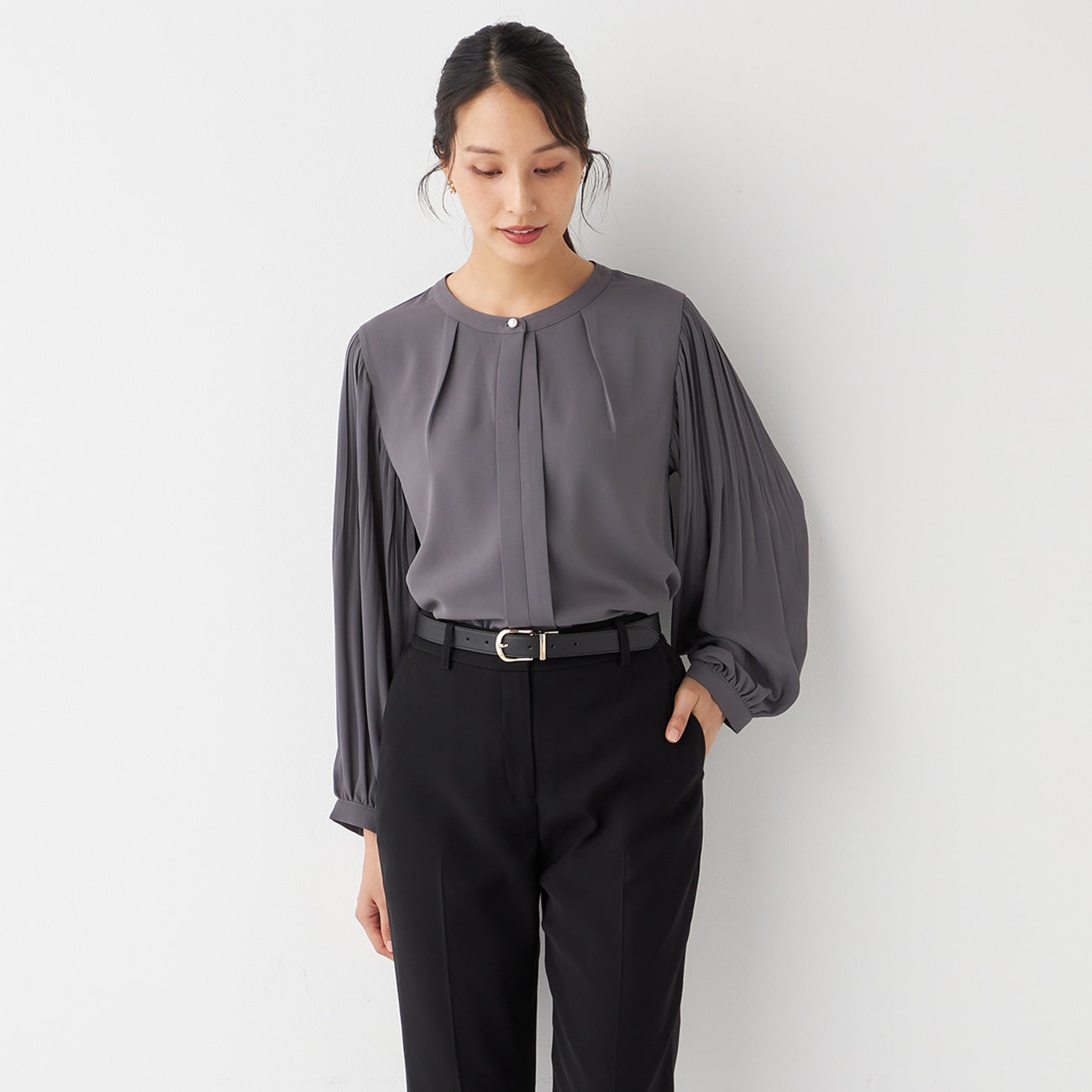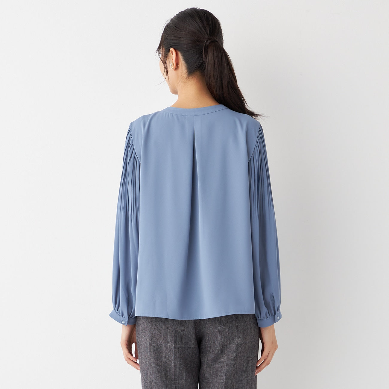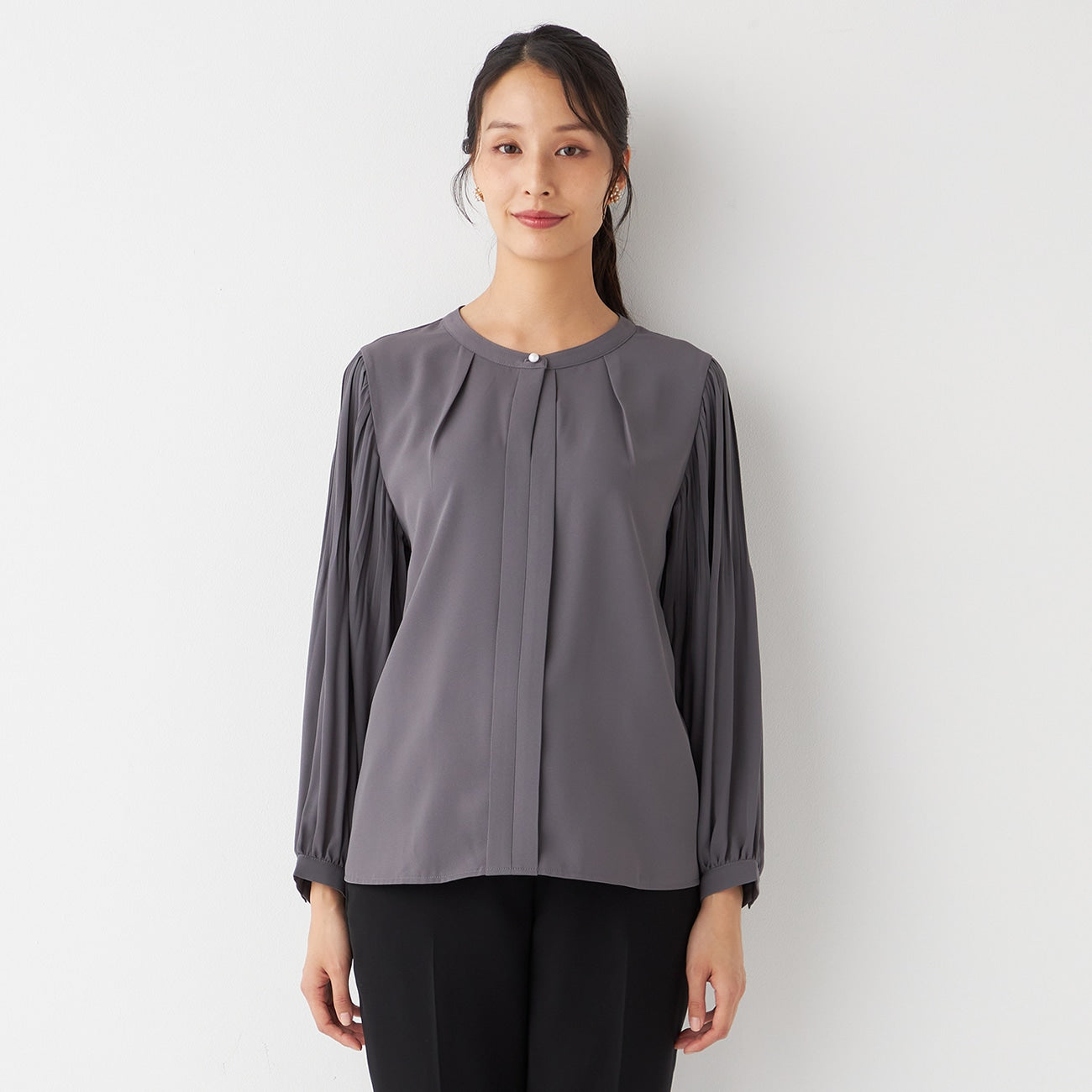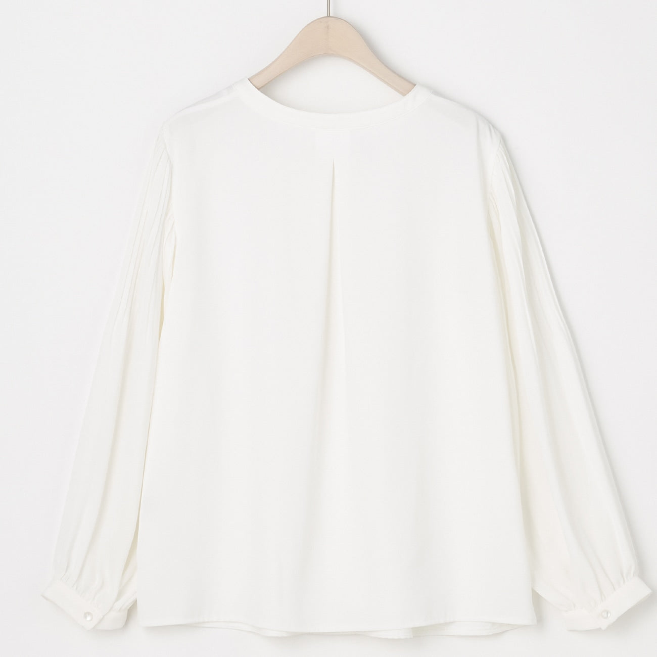 Tucked Sleeve Blouse with Pearl Button