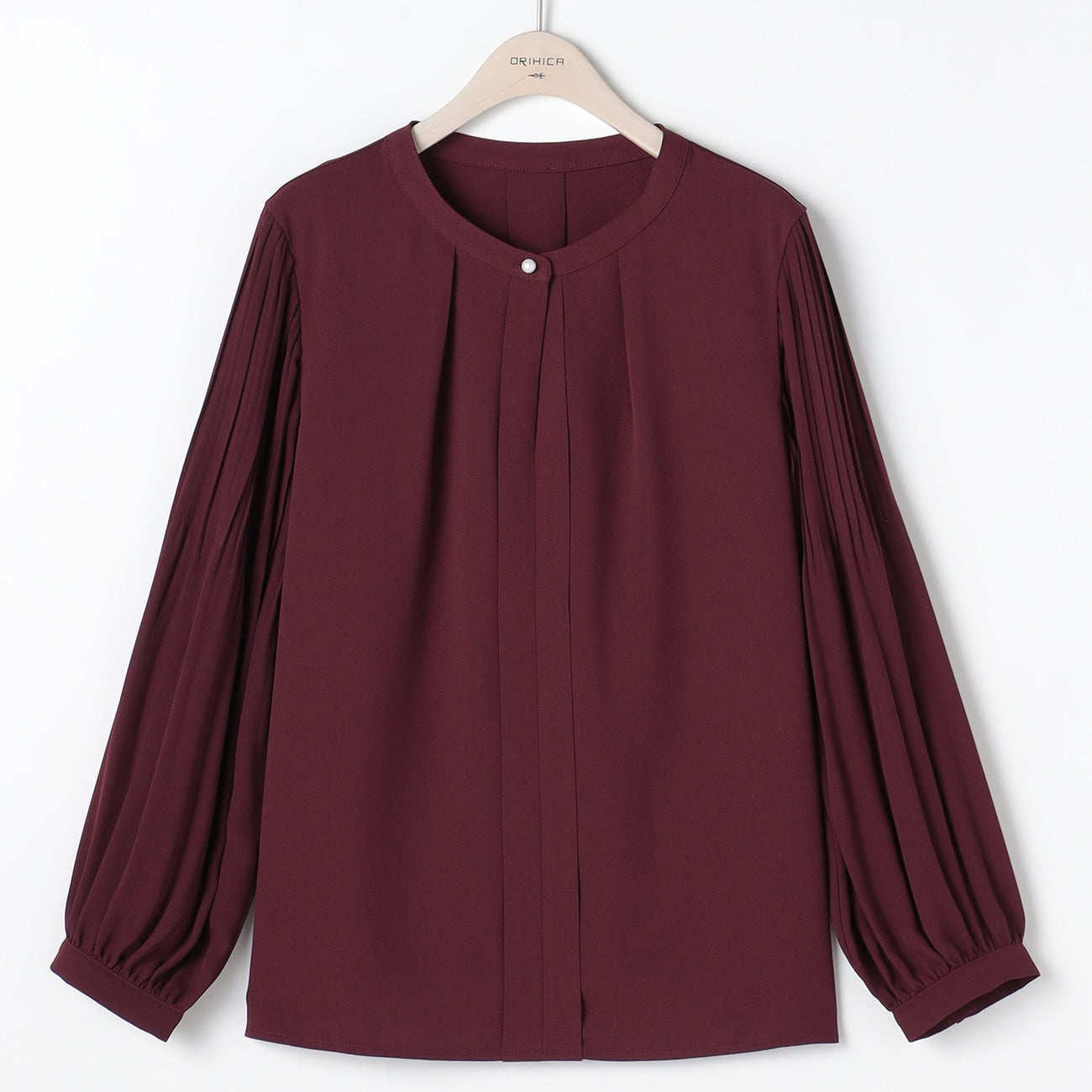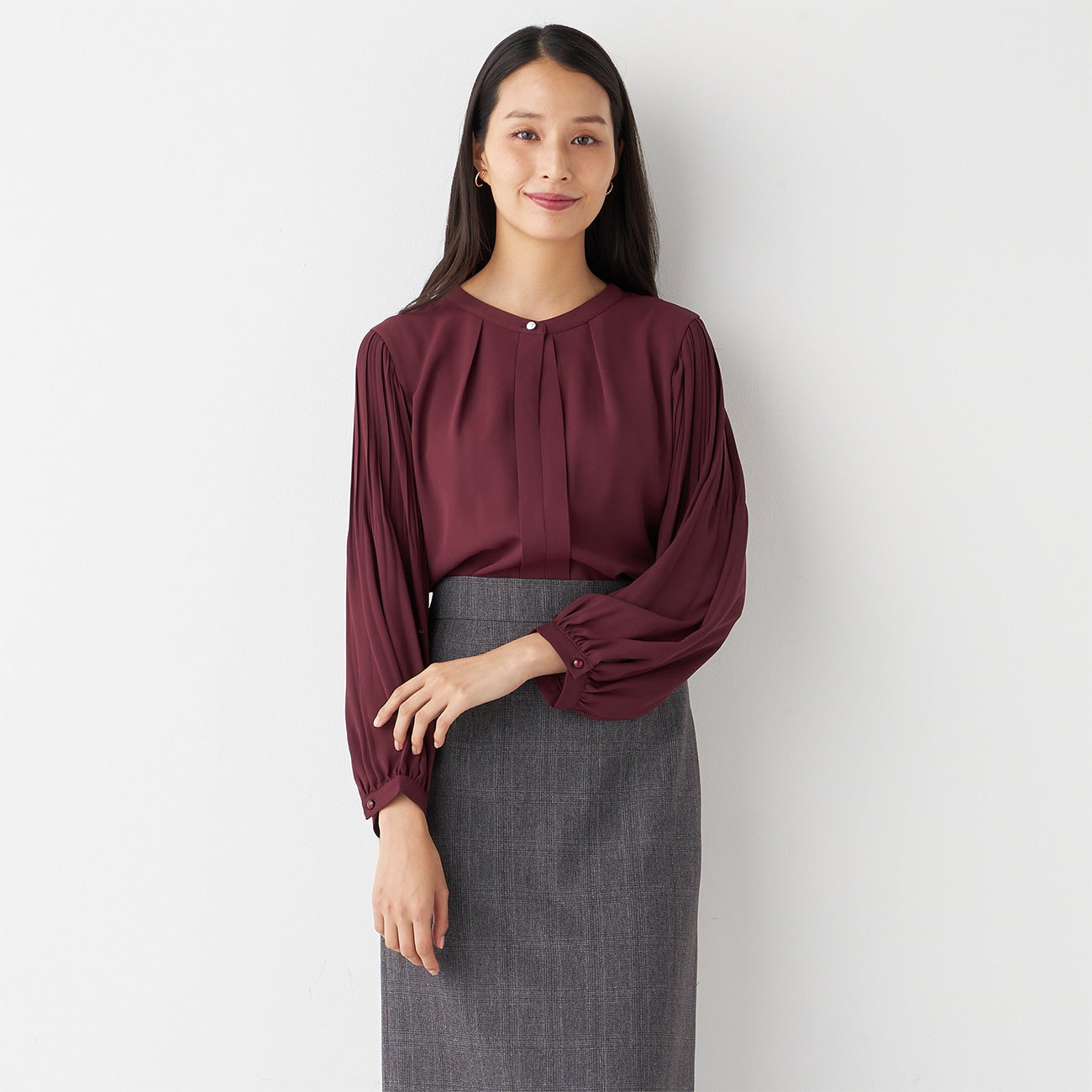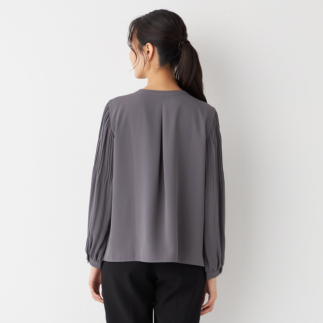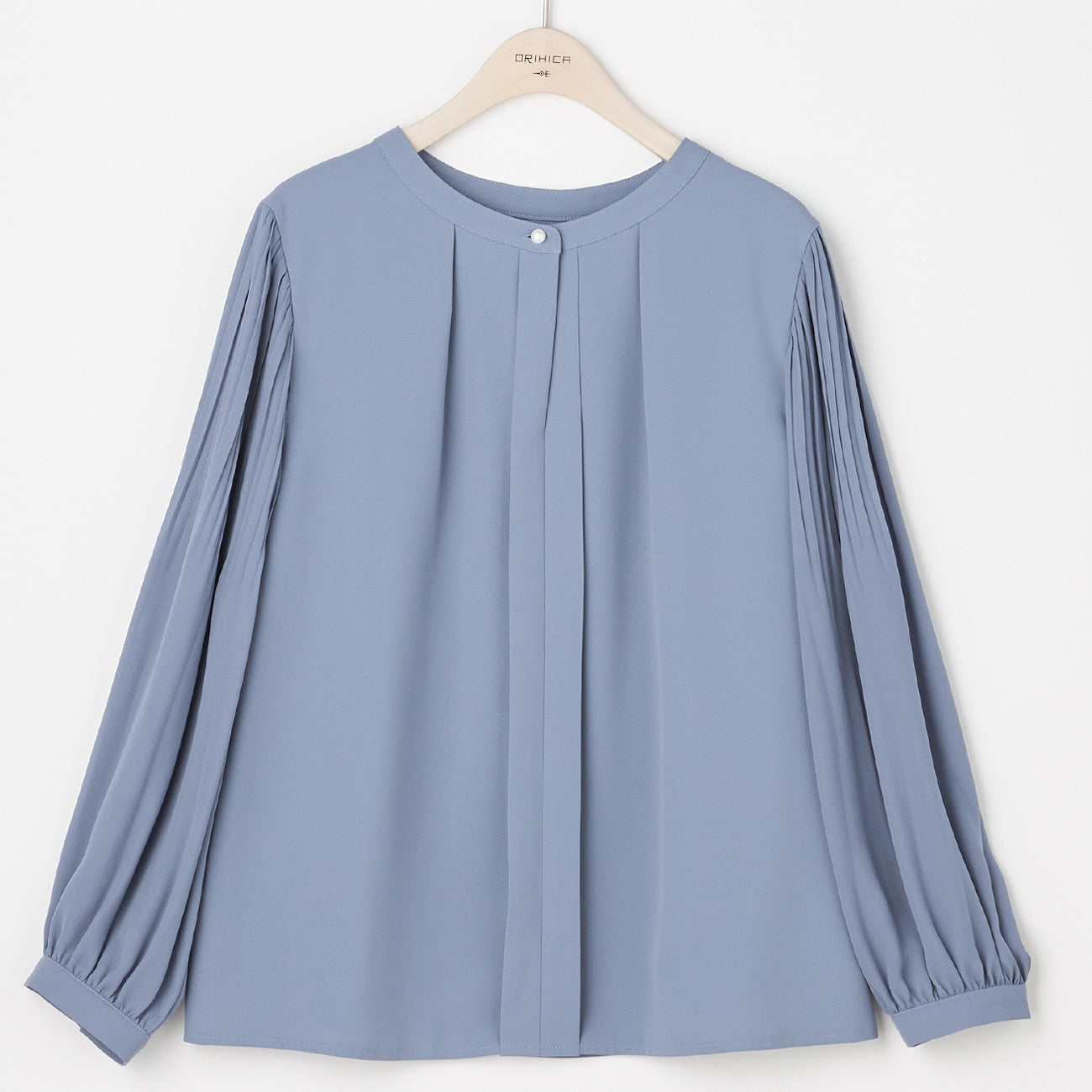 Tucked Sleeve Blouse with Pearl Button