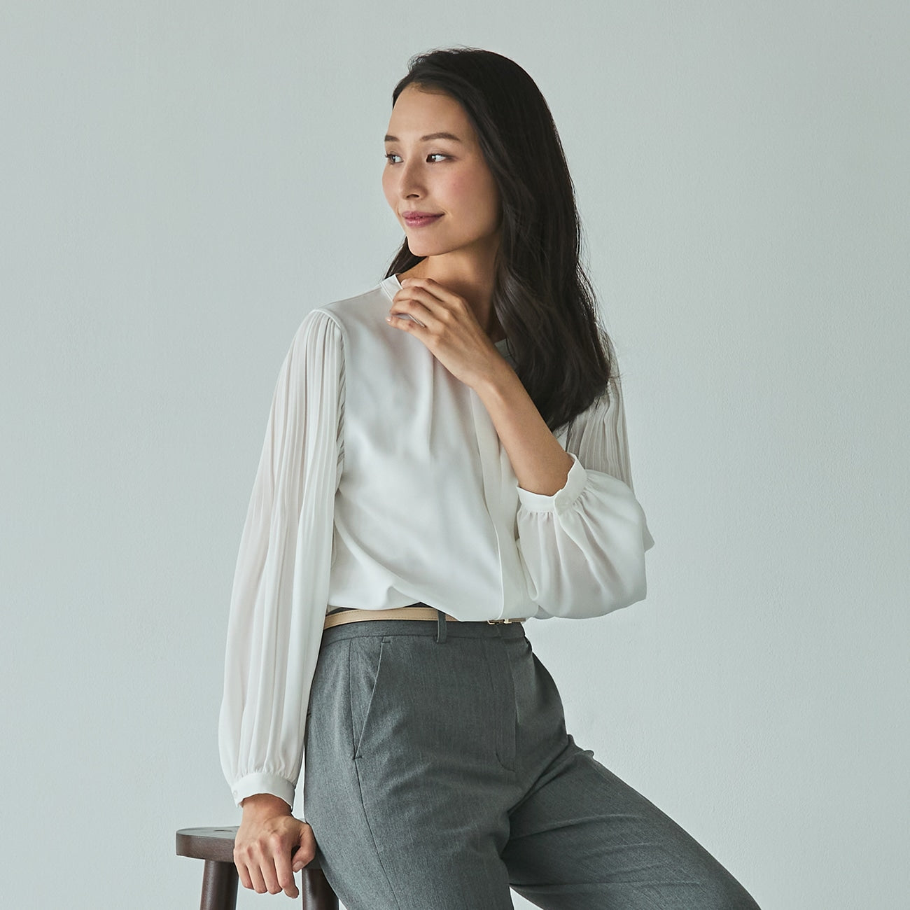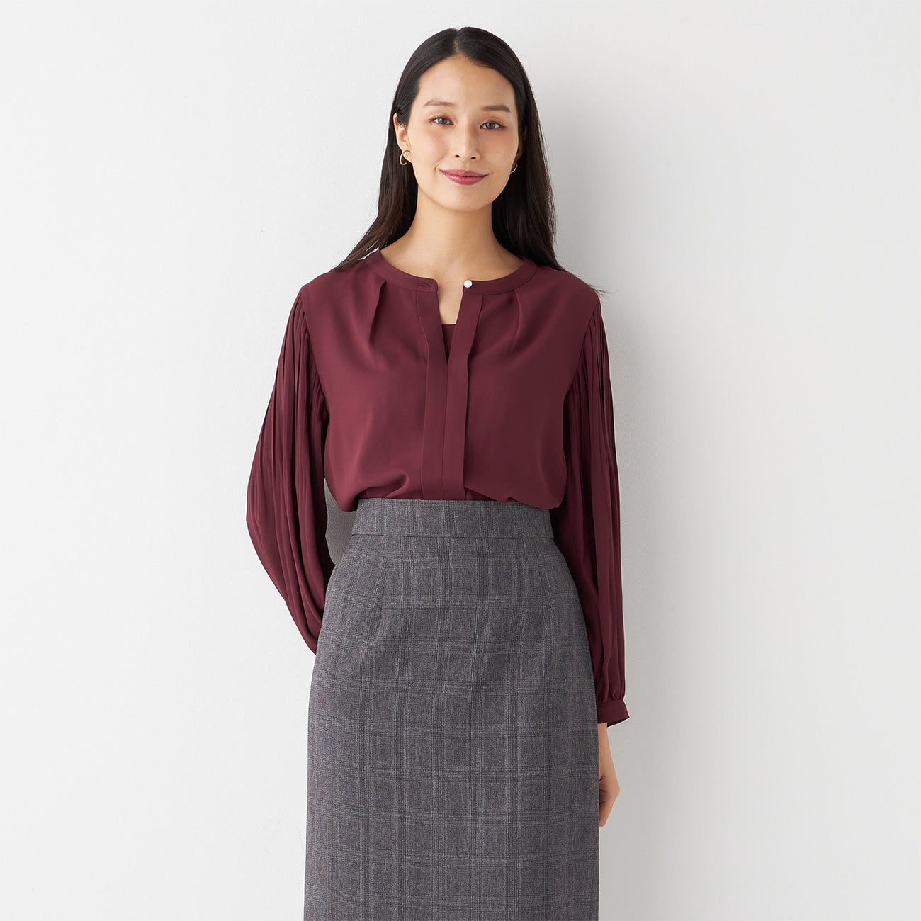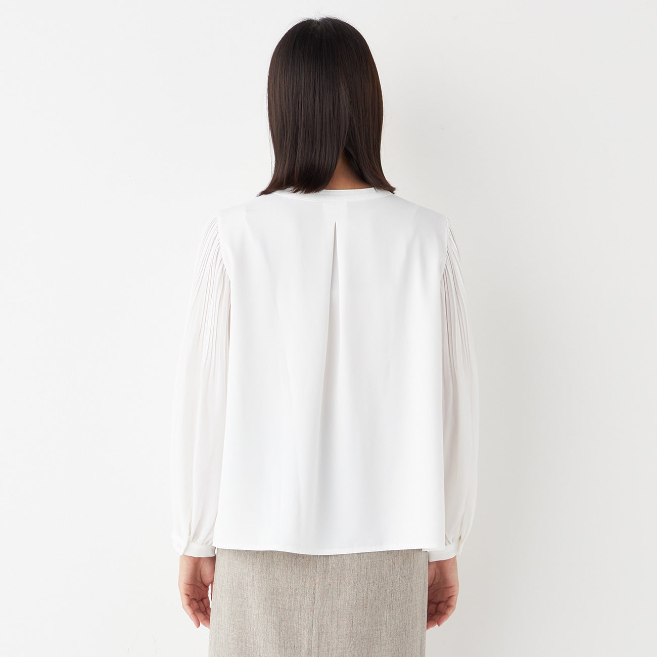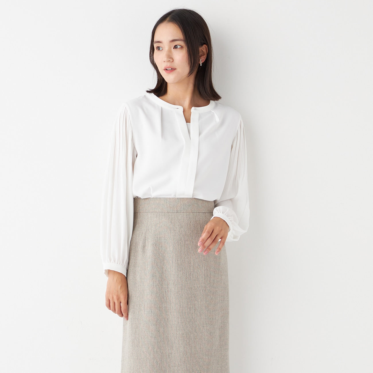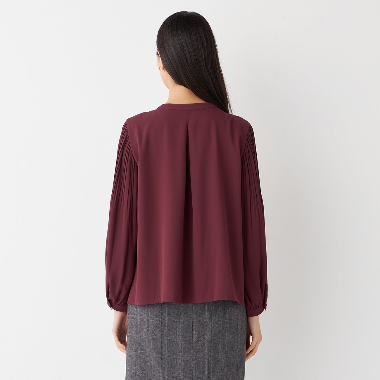 Tucked Sleeve Blouse with Pearl Button