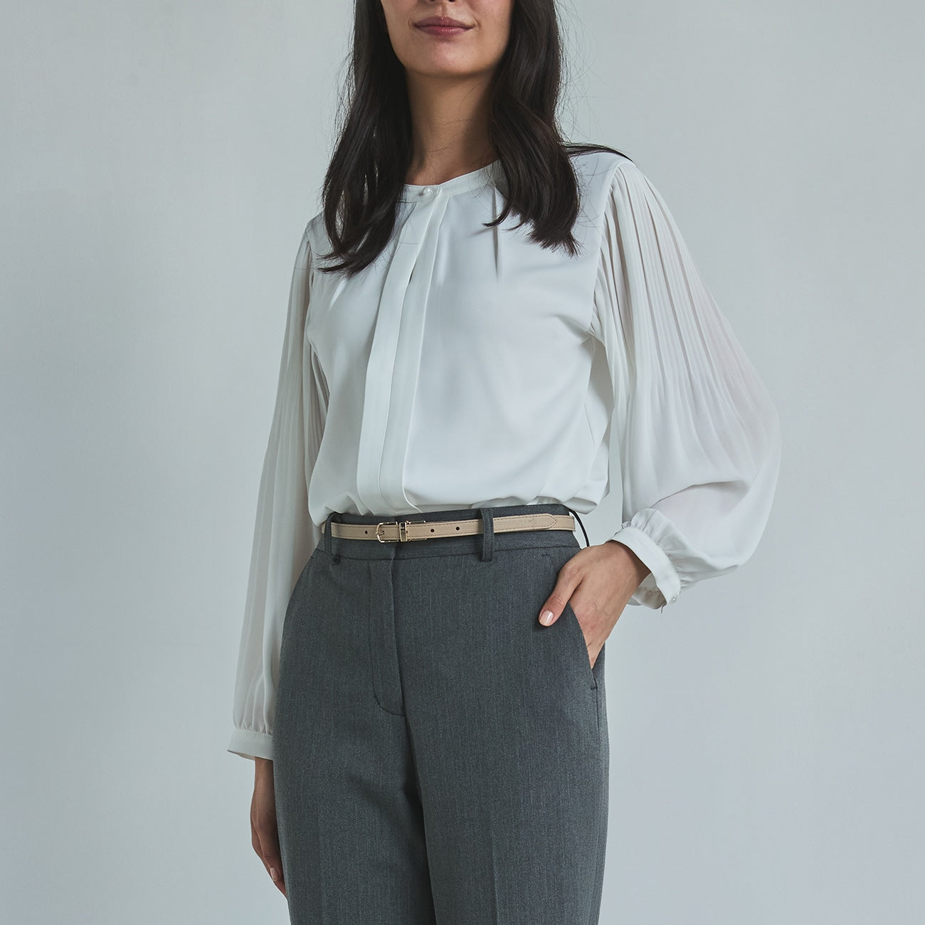 Blouse with statement pleated sleeves, made from a soft, comfortable material