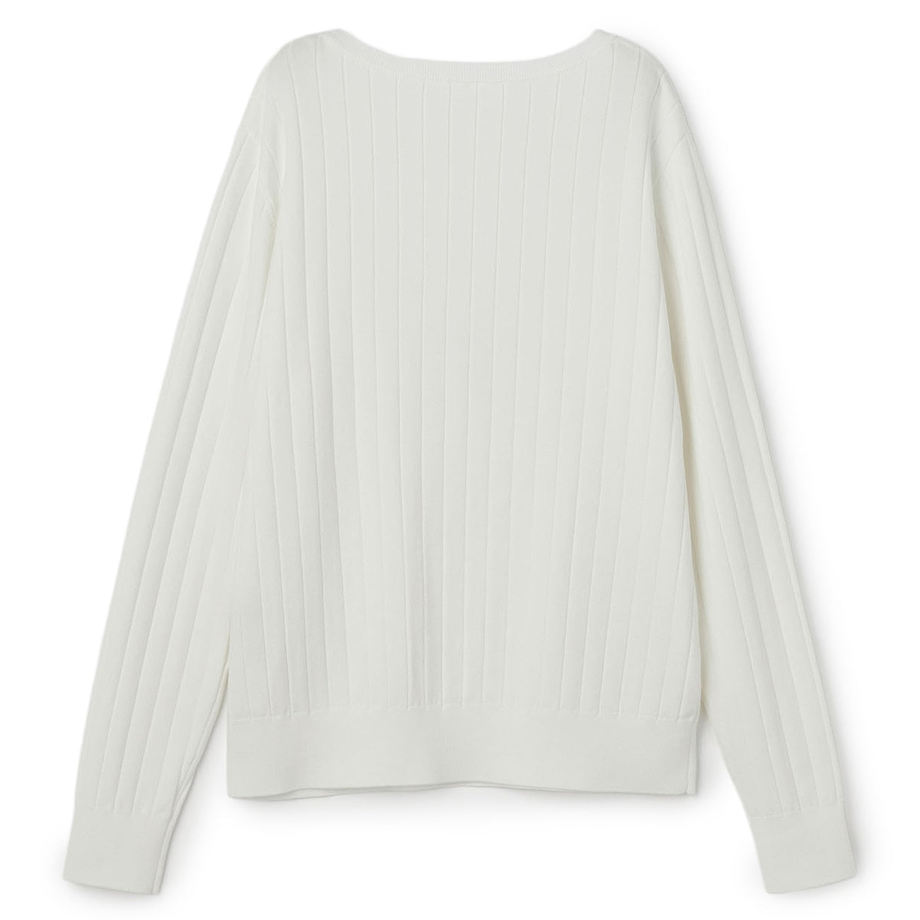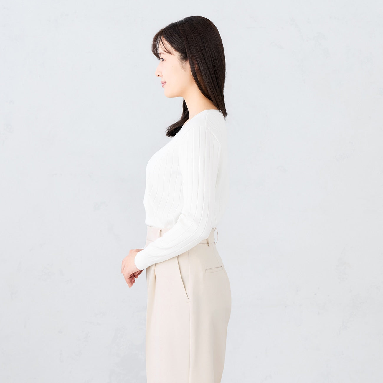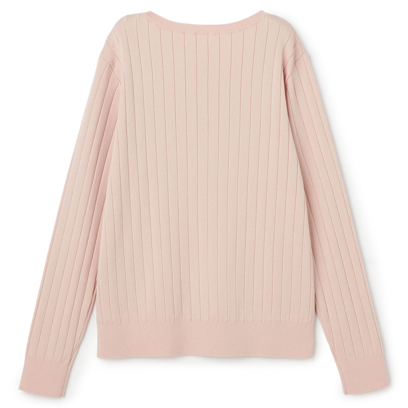 Thin ribs emphasizing vertical lines demonstrate a slimming effect. Clean off-white and gentle and gorgeous pink.