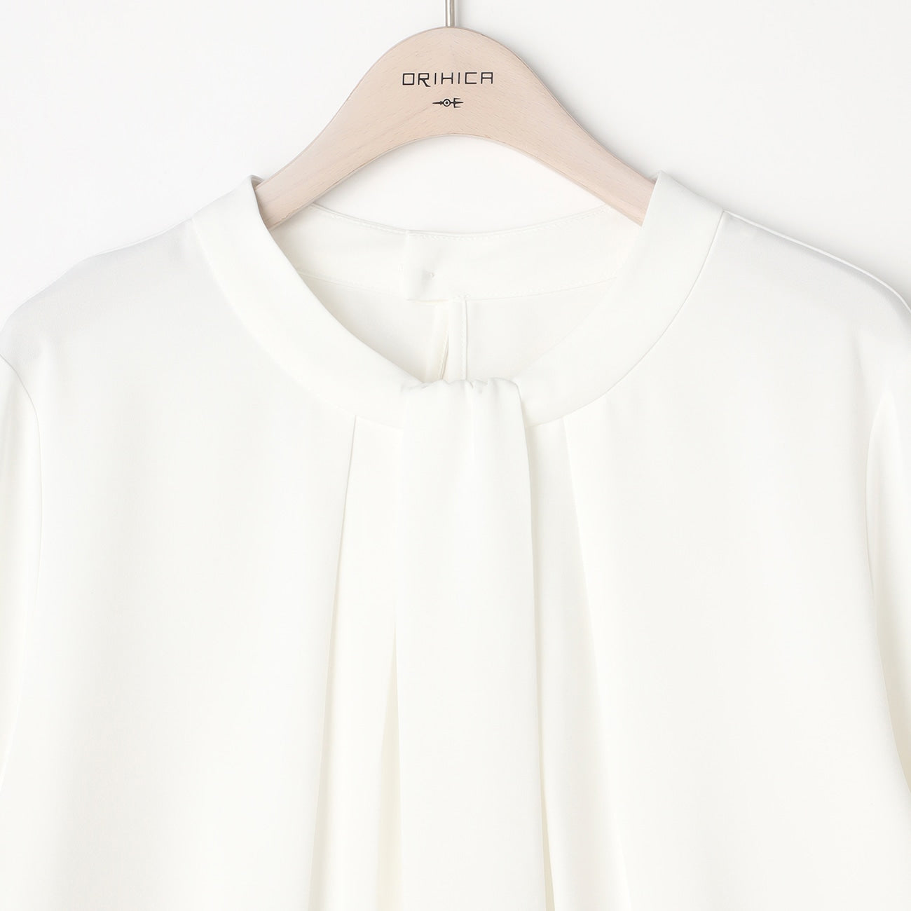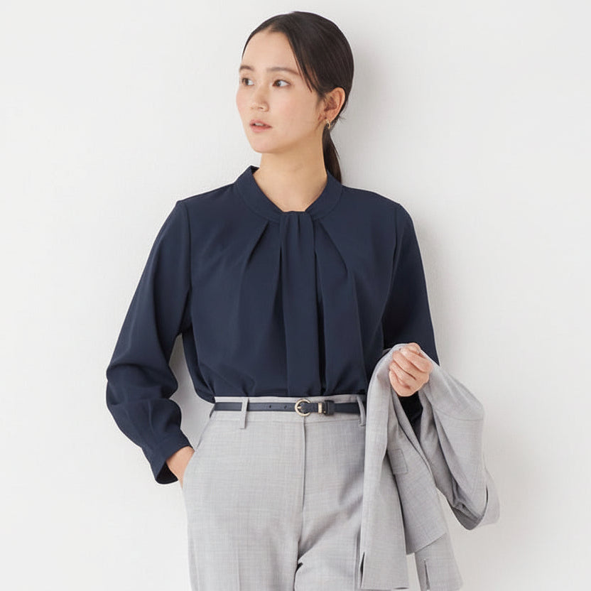 Bowtie style blouse with tuck design for an elegant look.