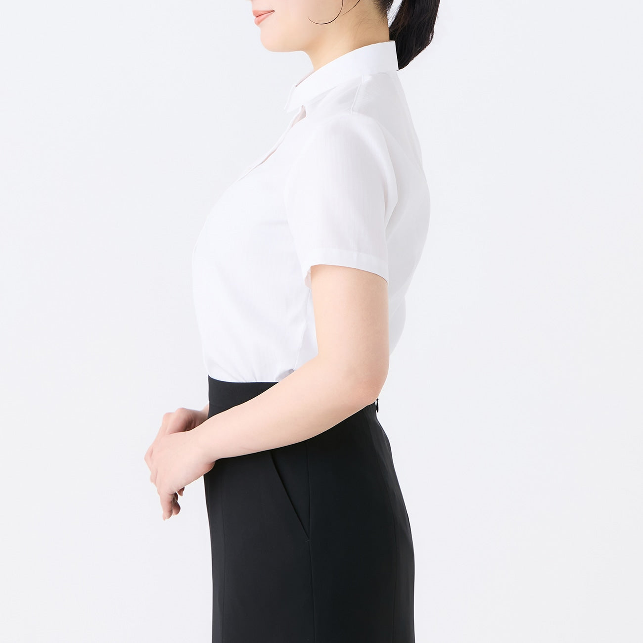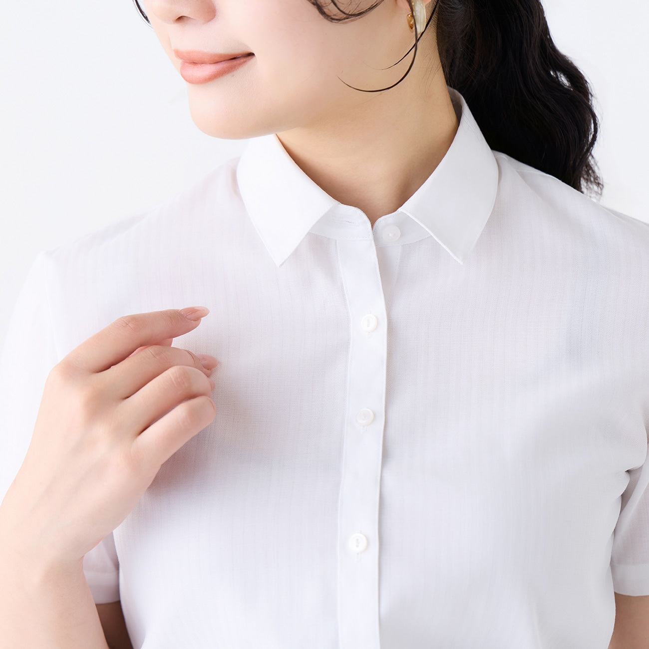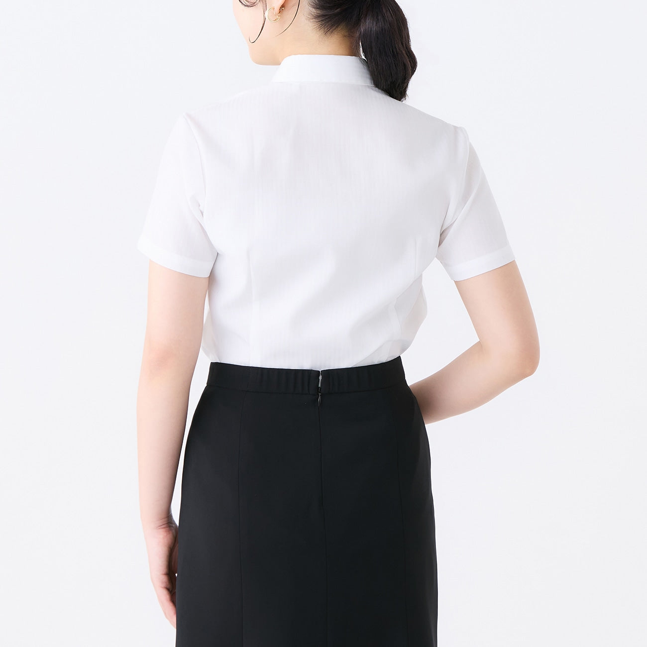 Women's Non-Iron Point Collar Short Sleeve Dobby Shirt - White_05