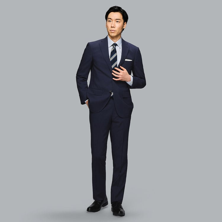 ・細緻紗線打造,結合AOKI剪裁工藝的高質感西裝。