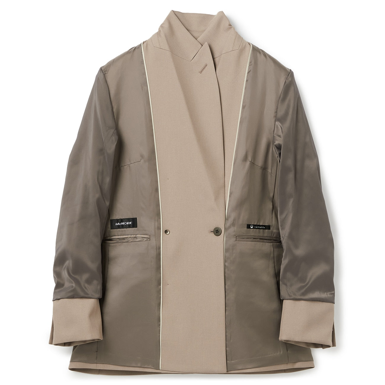 雙排扣西裝外套/半內裏/手臂好活動/腰部、內側有口袋/袖口1顆鈕扣