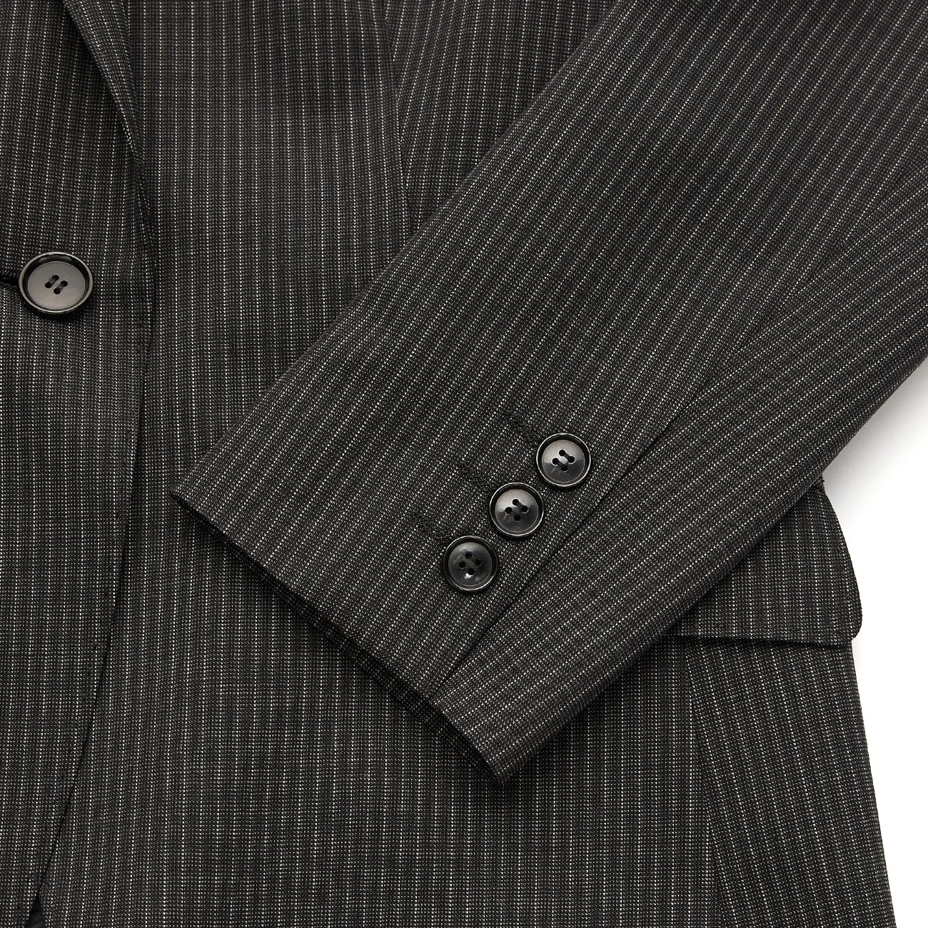 西装外套1颗钮扣/半衬里/袖口假扣眼/胸前、腰侧有口袋/内侧有口袋
