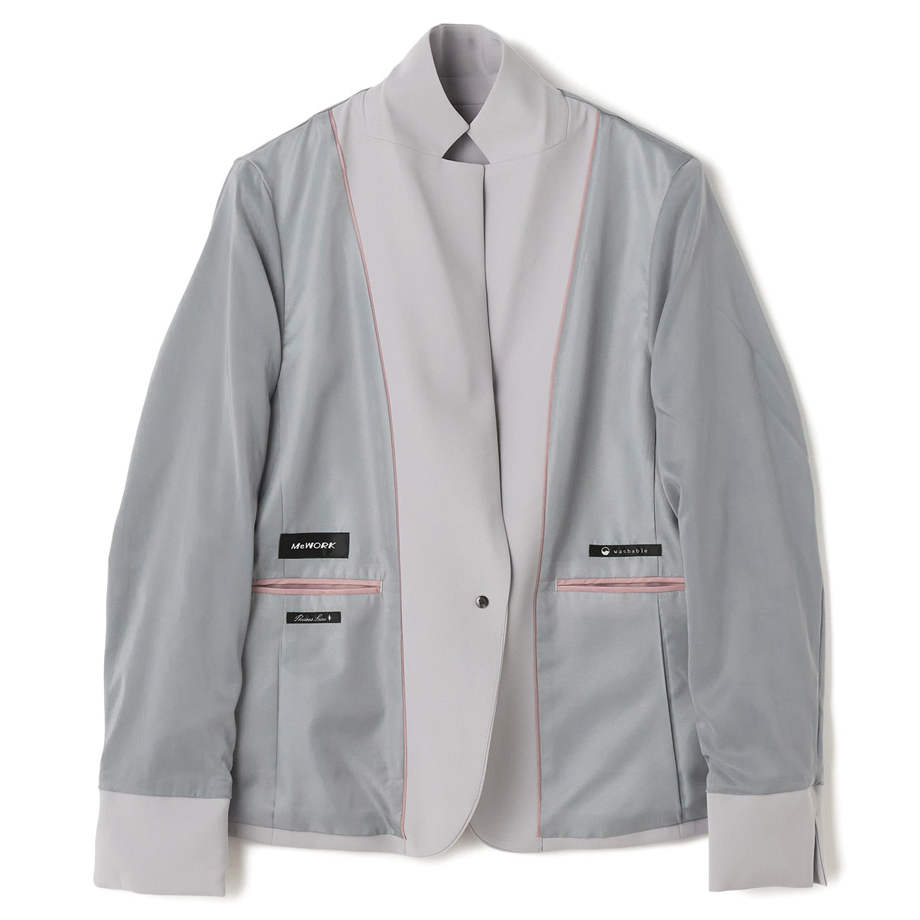 >西裝外套、半內裏、袖口可反折、胸前、腰側有口袋、內側有口袋