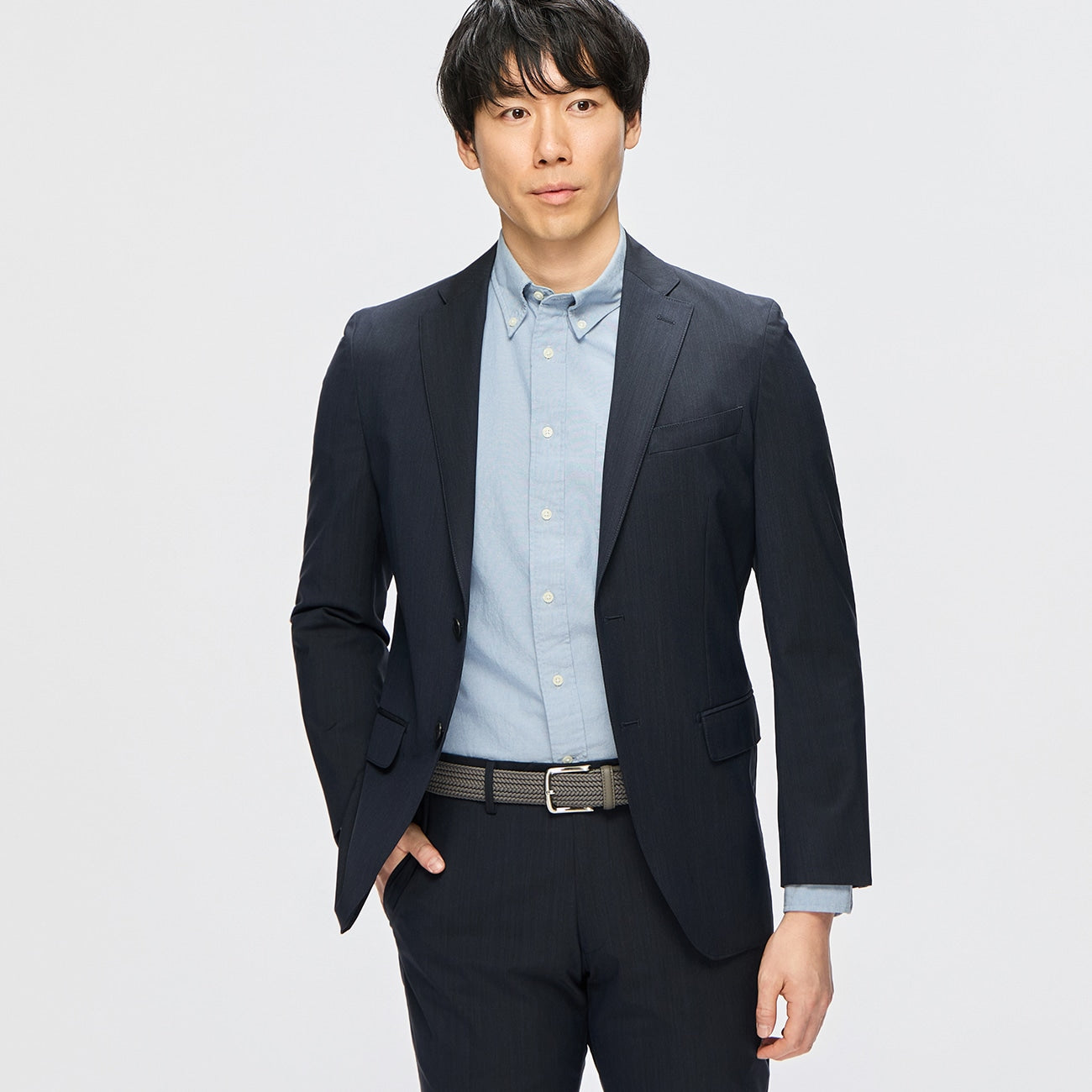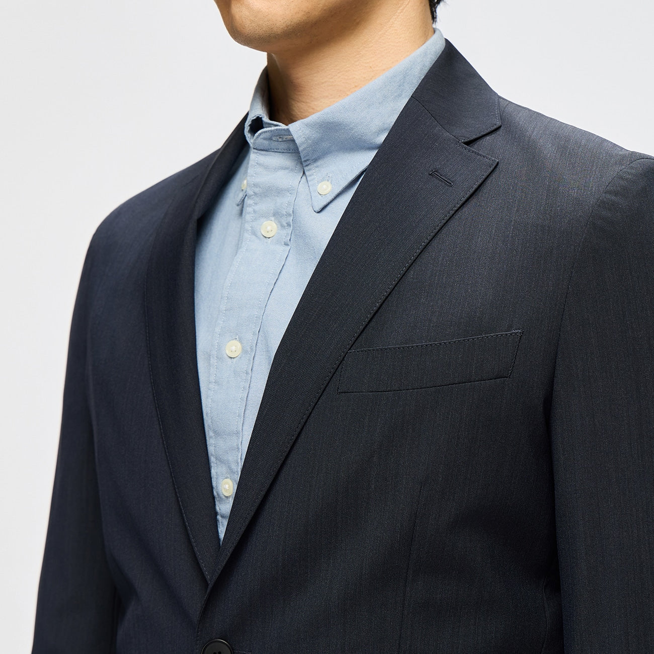 Washable Super Stretch Chambray-Like Suit Jacket - Navy