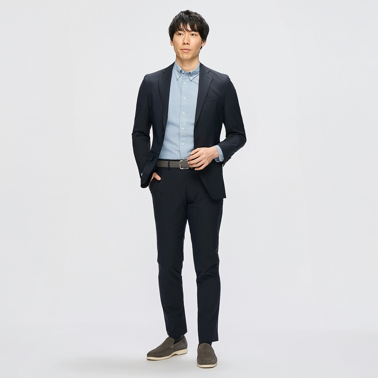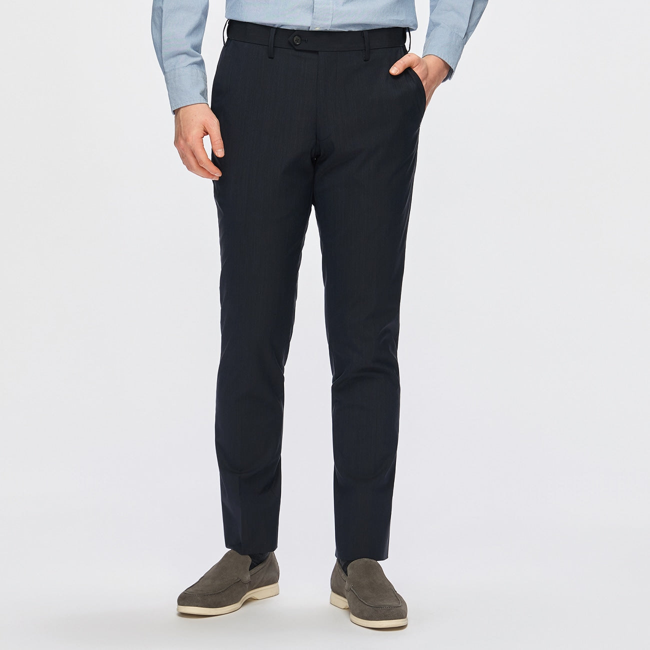 Washable Super Stretch Chambray-Like Tapered Flat-Front Suit Pants