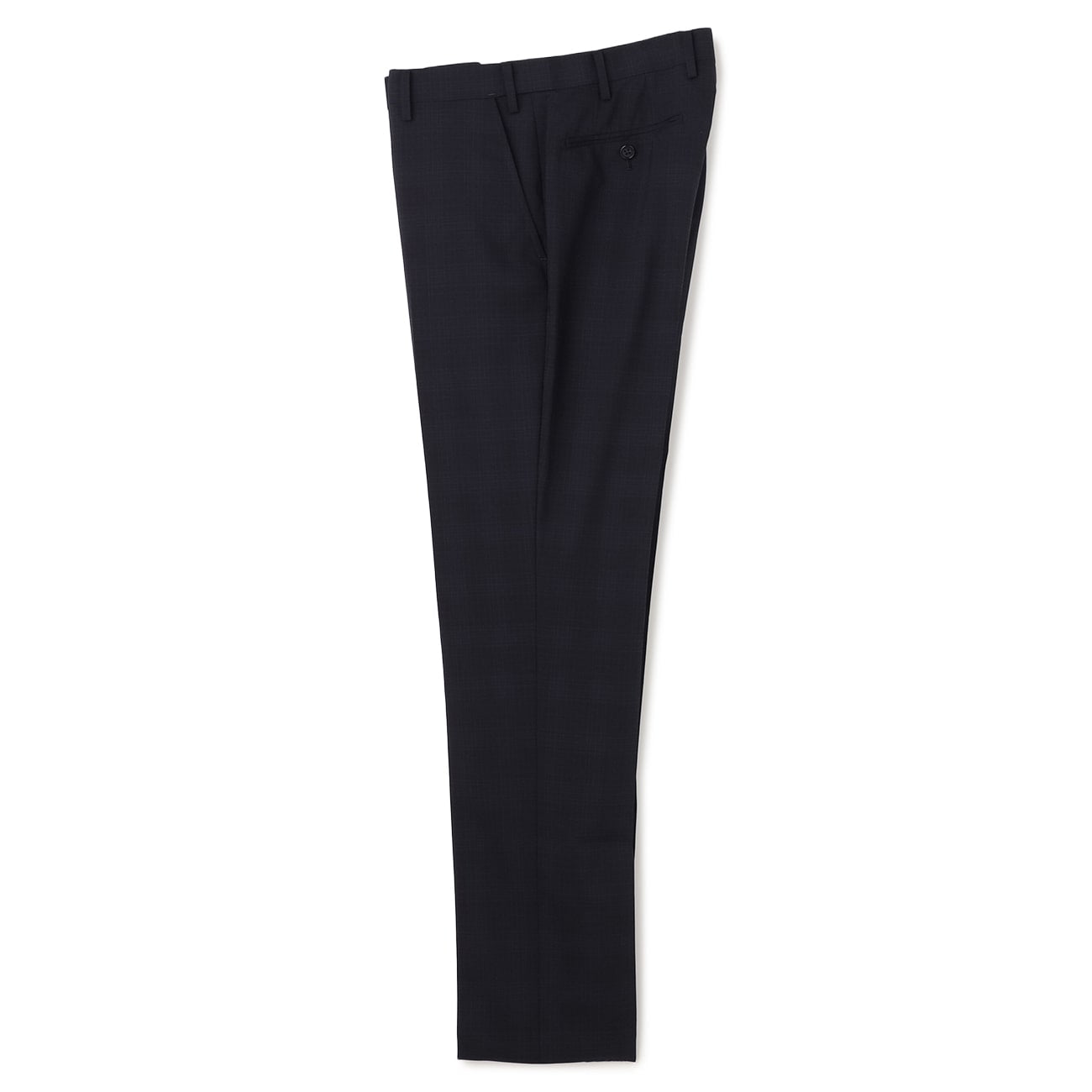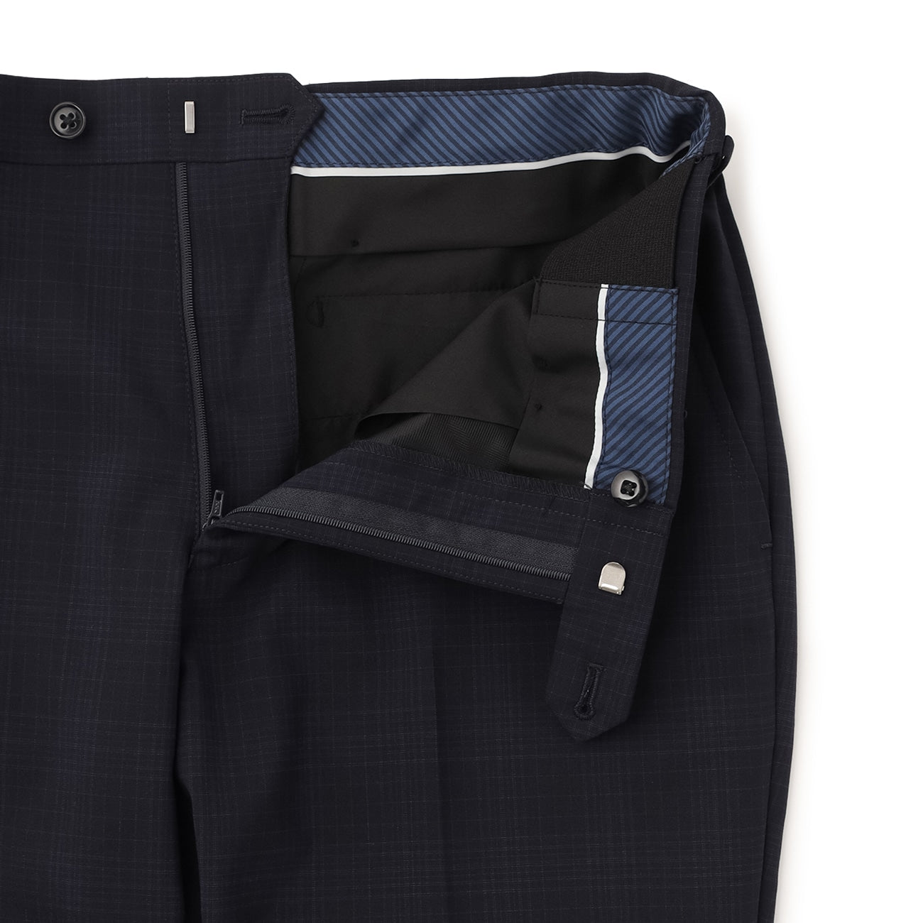 Washable Super Stretch Glen Plaid Wool Blend Tapered Suit Pants - Navy