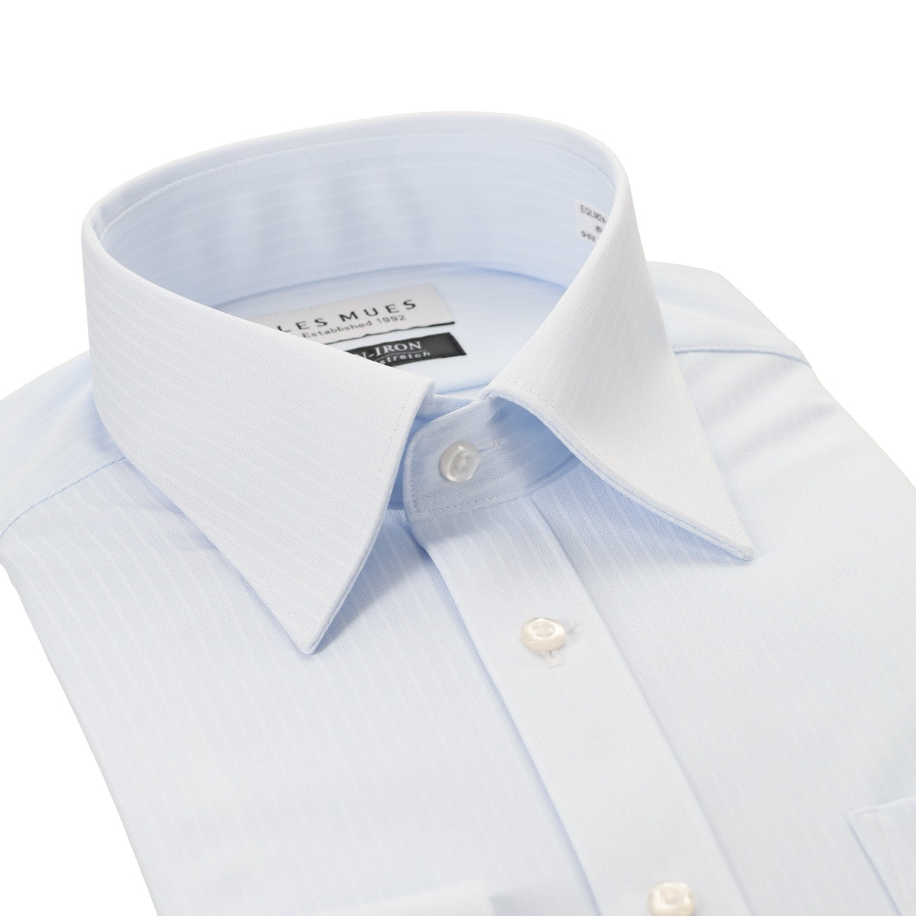 Long sleeves, point collar, left chest pocket, collar stay, convertible cuffs