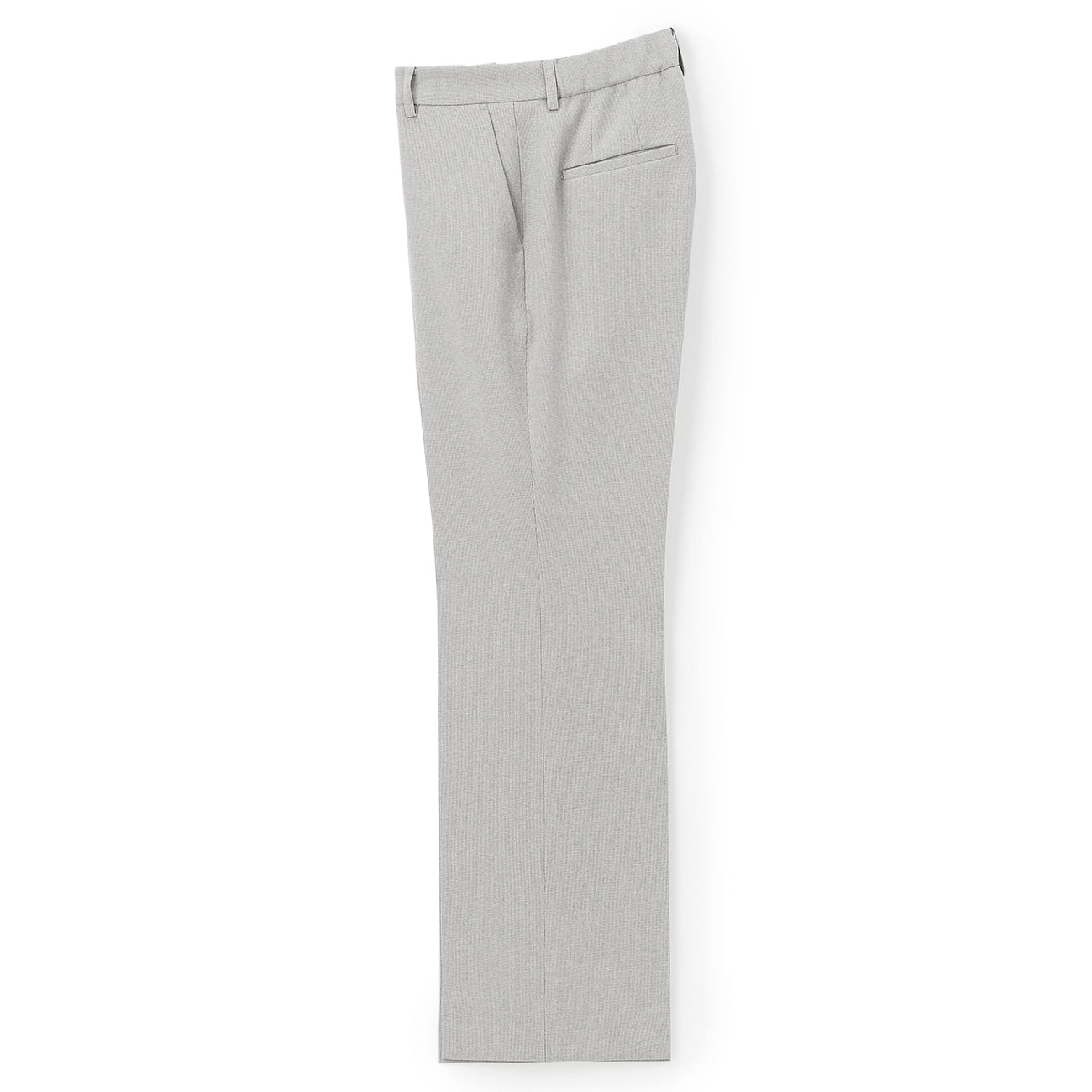 Featuring a semi-flare design with center press lines to elongate the legs, these trousers maintain a sharp silhouette without bagging at the knees and include a back-elastic waistband for all-day comfort.