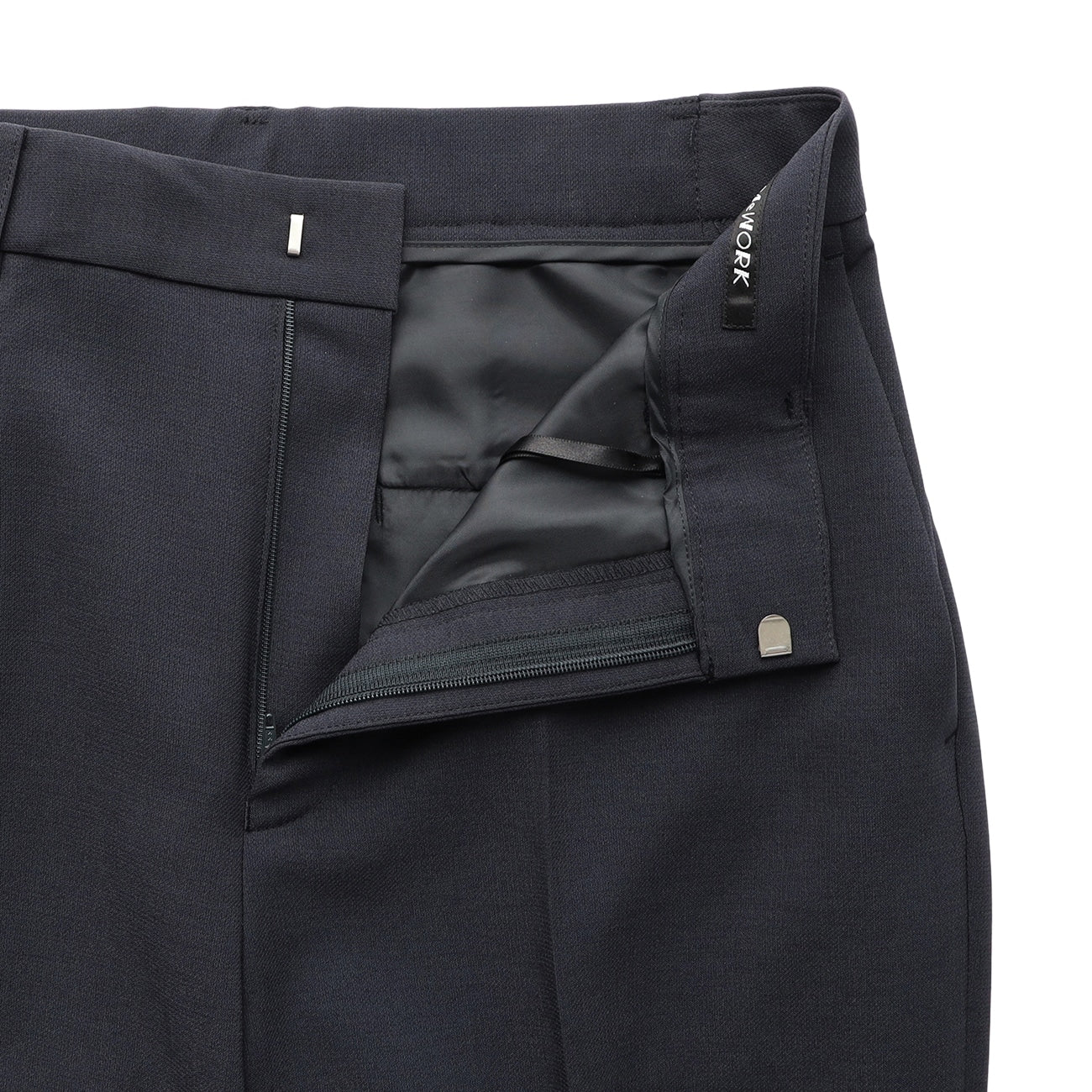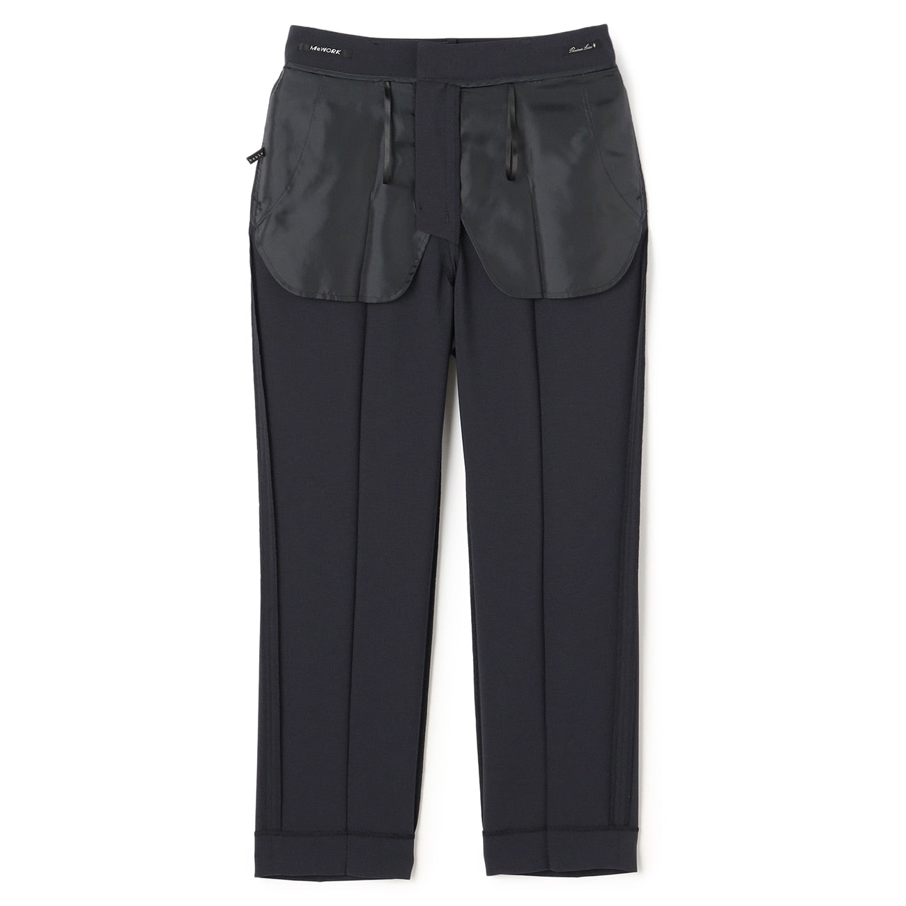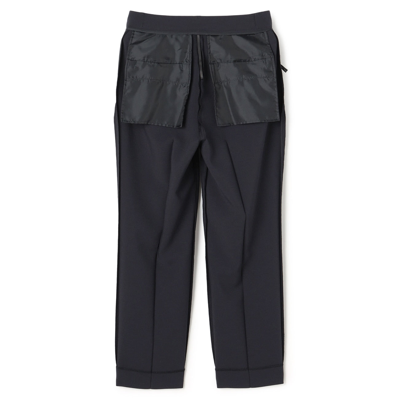 直筒西装裤/裤脚已包边/腰部、后臀有口袋/腰围松紧带设计