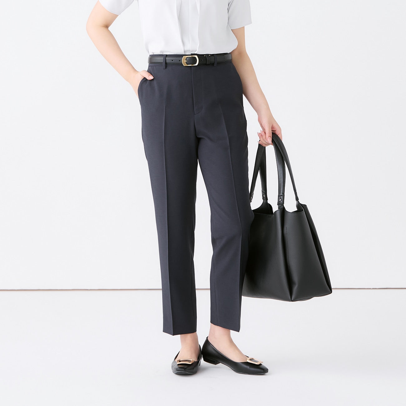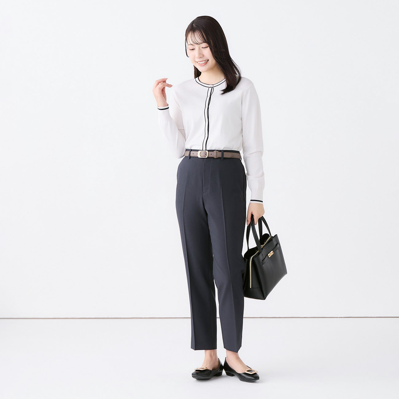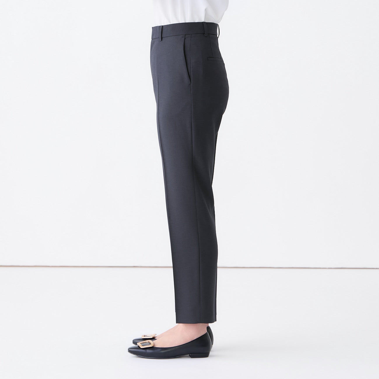 ・直筒褲剪裁,呈現雙腿筆直線條。