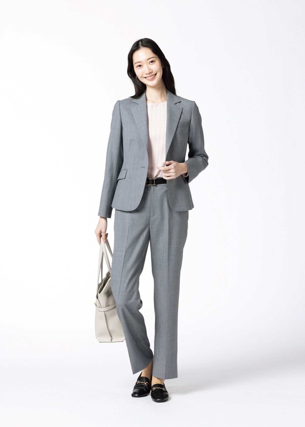 Special piece created from design drawings to patterns under supervision of fashion designer Akiko Ogawa. Straight pants excellent in slimming effect by emphasizing vertical lines. Leg-lengthening effect with design where knee position looks high. Hip-up effect with design where hip position looks high.
