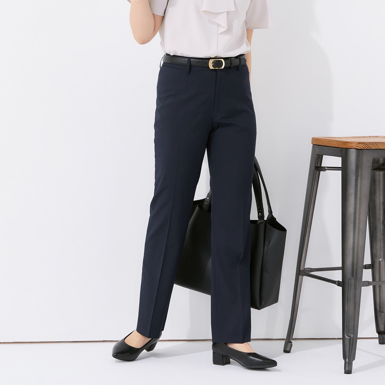 Aircool Washable Stretch Stripe Straight Pants - Navy