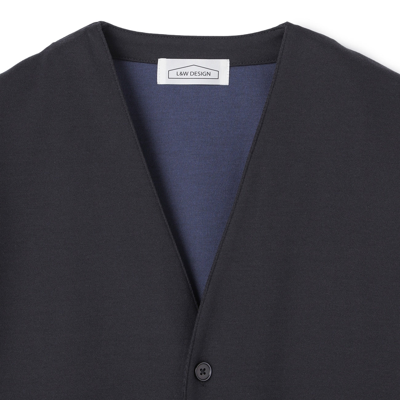 Designed with a shallower V-neckline than a typical cardigan, this versatile piece offers a polished look when paired with a shirt and a modern, urban style when worn over a T-shirt.