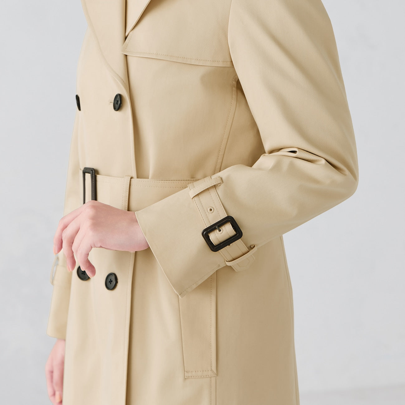 Stretch Water-repellent Double-Breasted Trench Coat - Beige