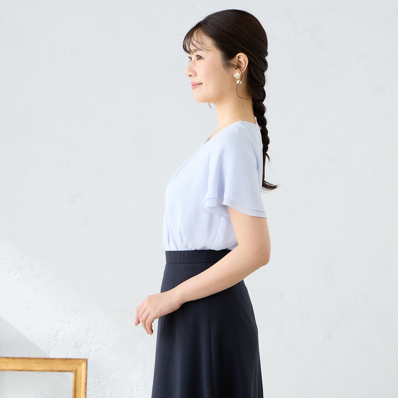 - A simple design and color that can be worn for various occasions, with a length that looks neat even when worn untucked.