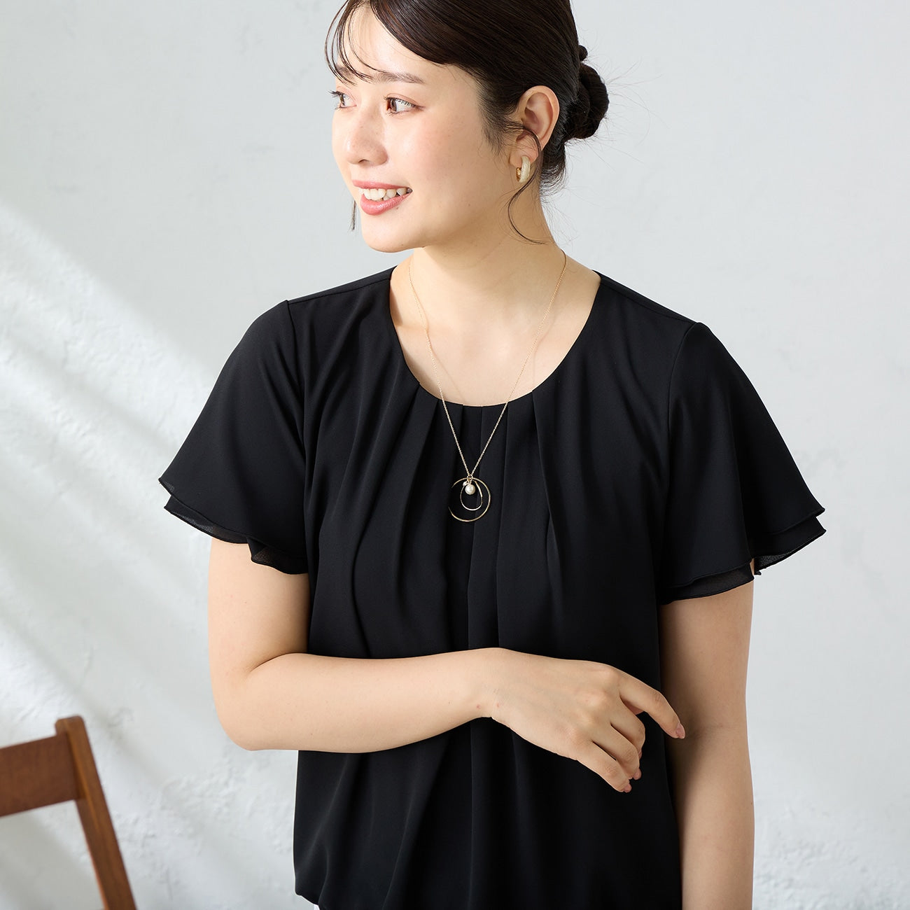 ・優雅垂墜、膚觸舒適。胸前打摺營造沉靜氛圍,雙層設計不怕透膚。
