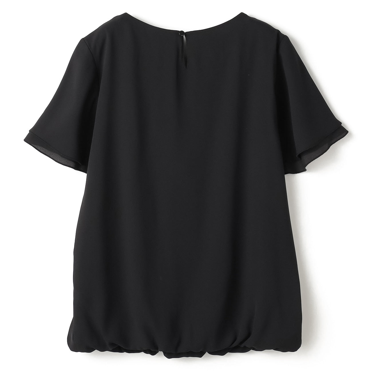 - A versatile short sleeve blouse with a front tuck design, double-layered body for opacity, and double-layered sleeves and a balloon hem for a flattering look.