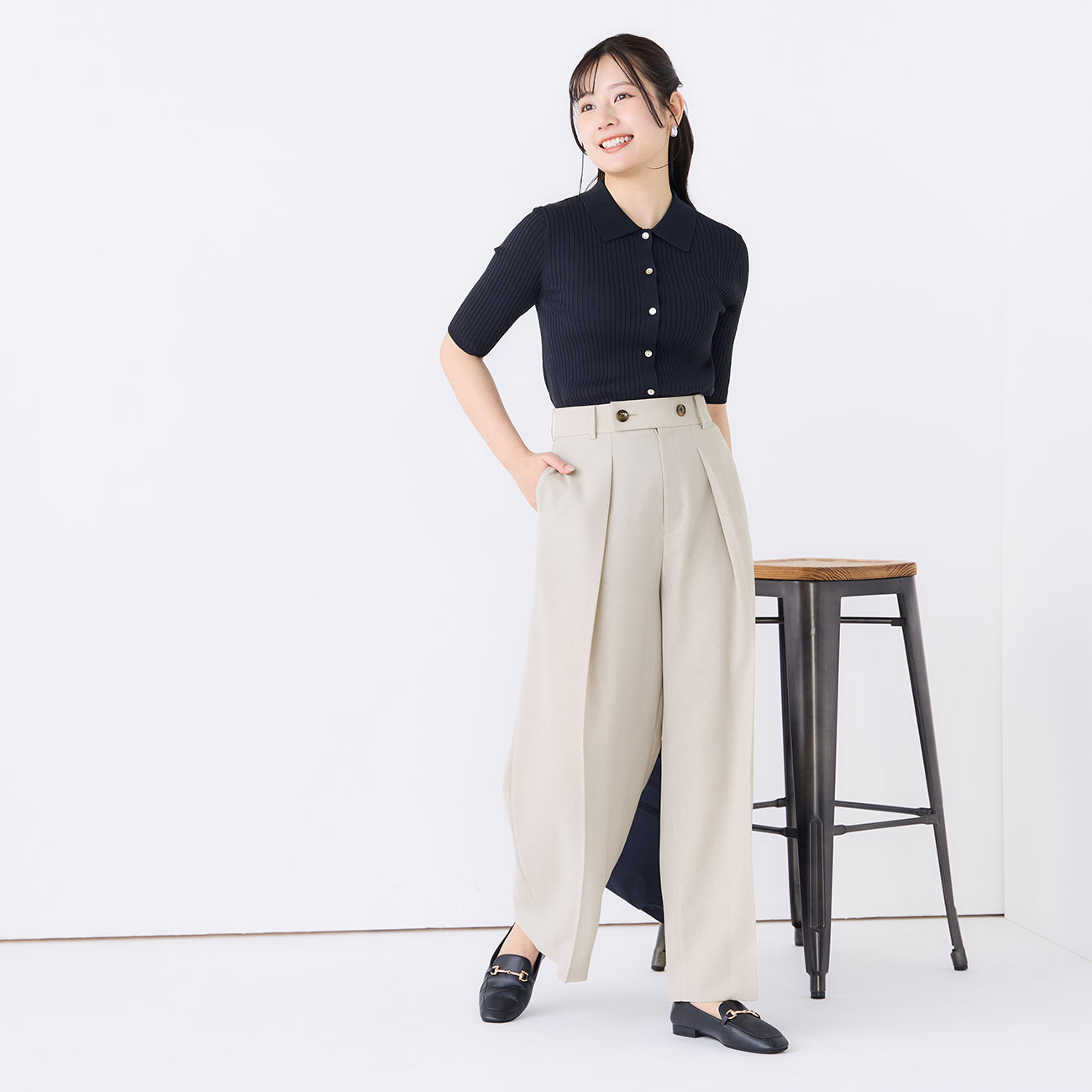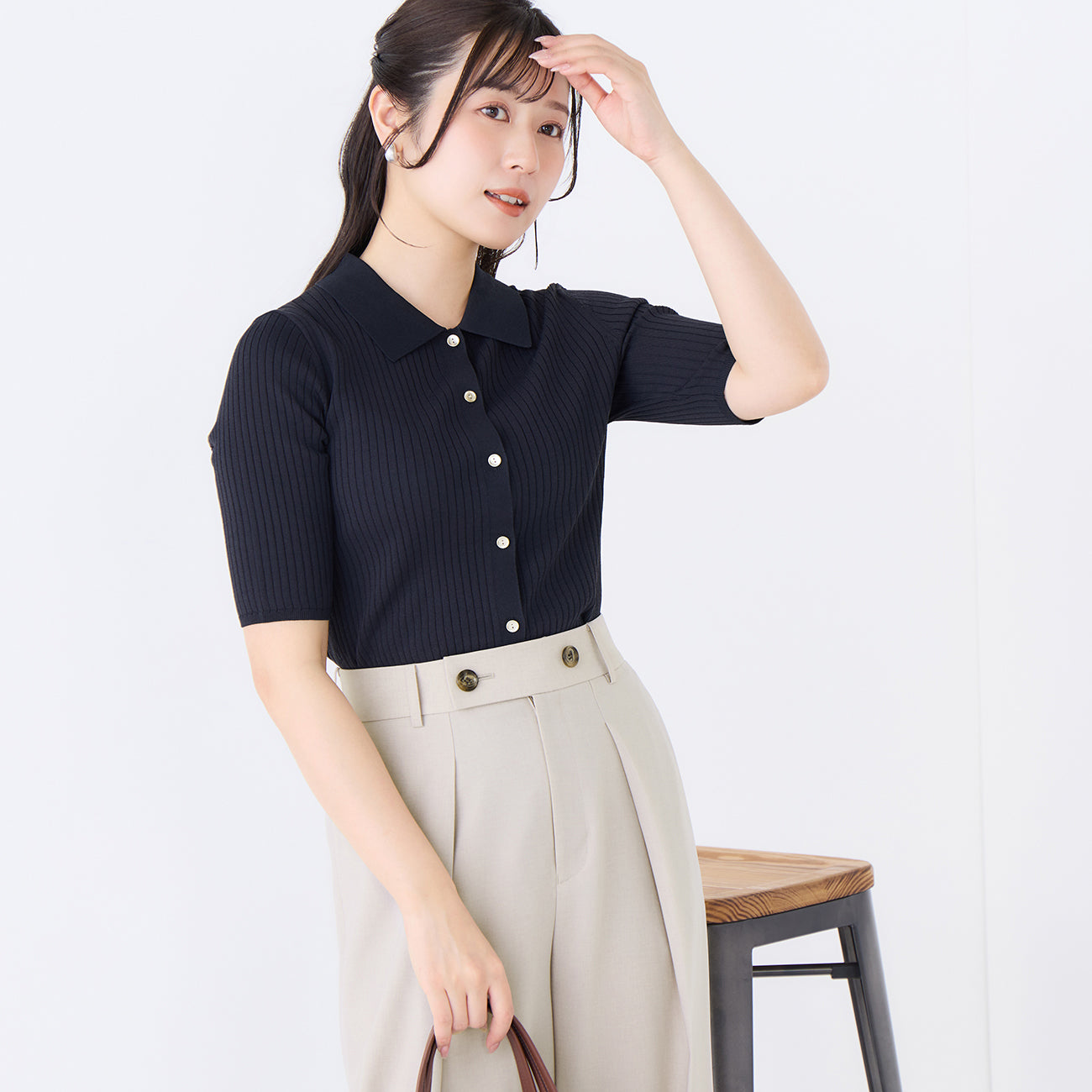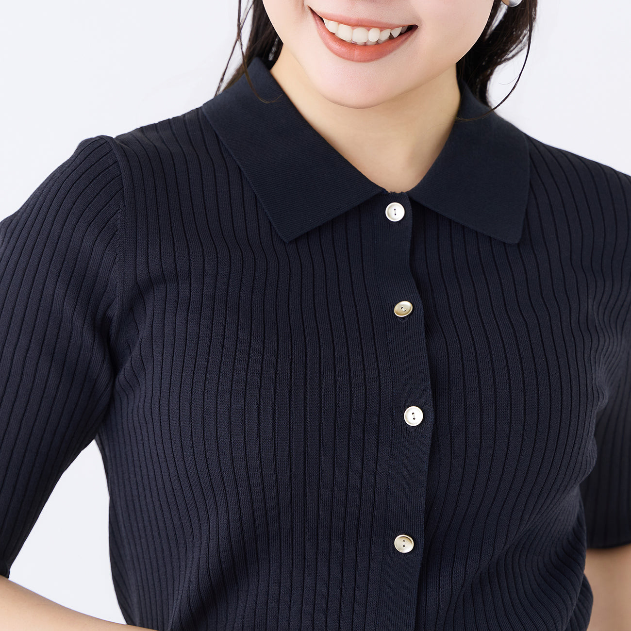 ・經典POLO衫設計,搭配前側金屬扣飾點綴優雅細節。材質不透光,穿著安心。