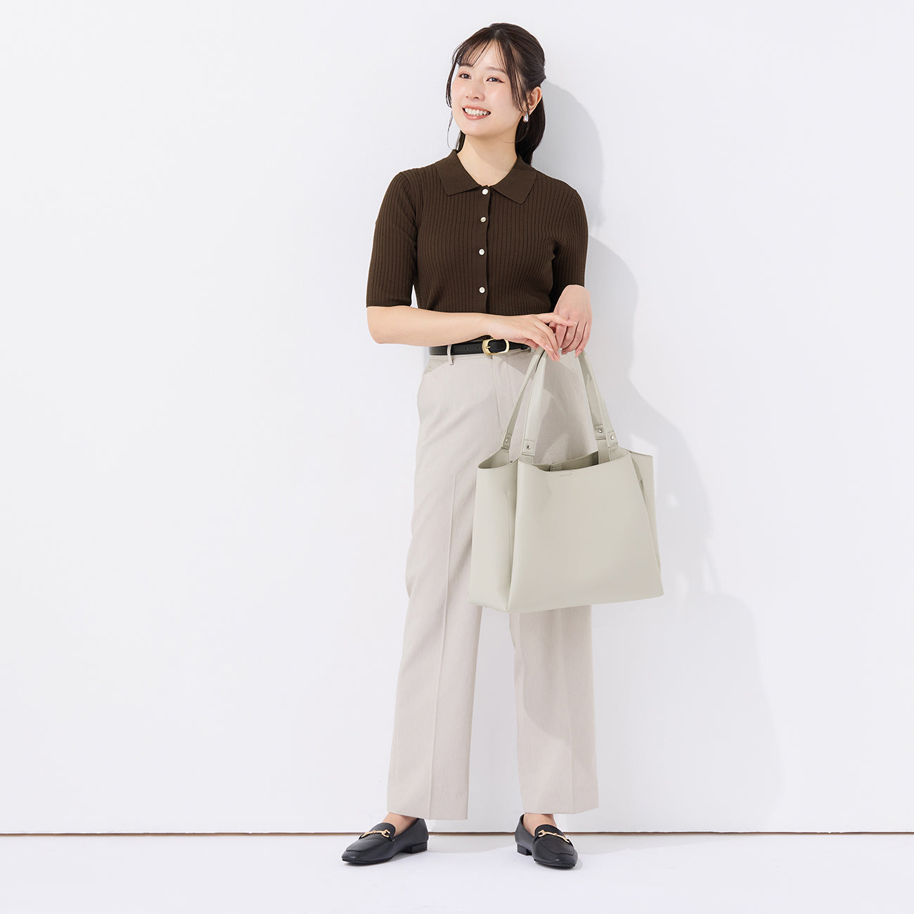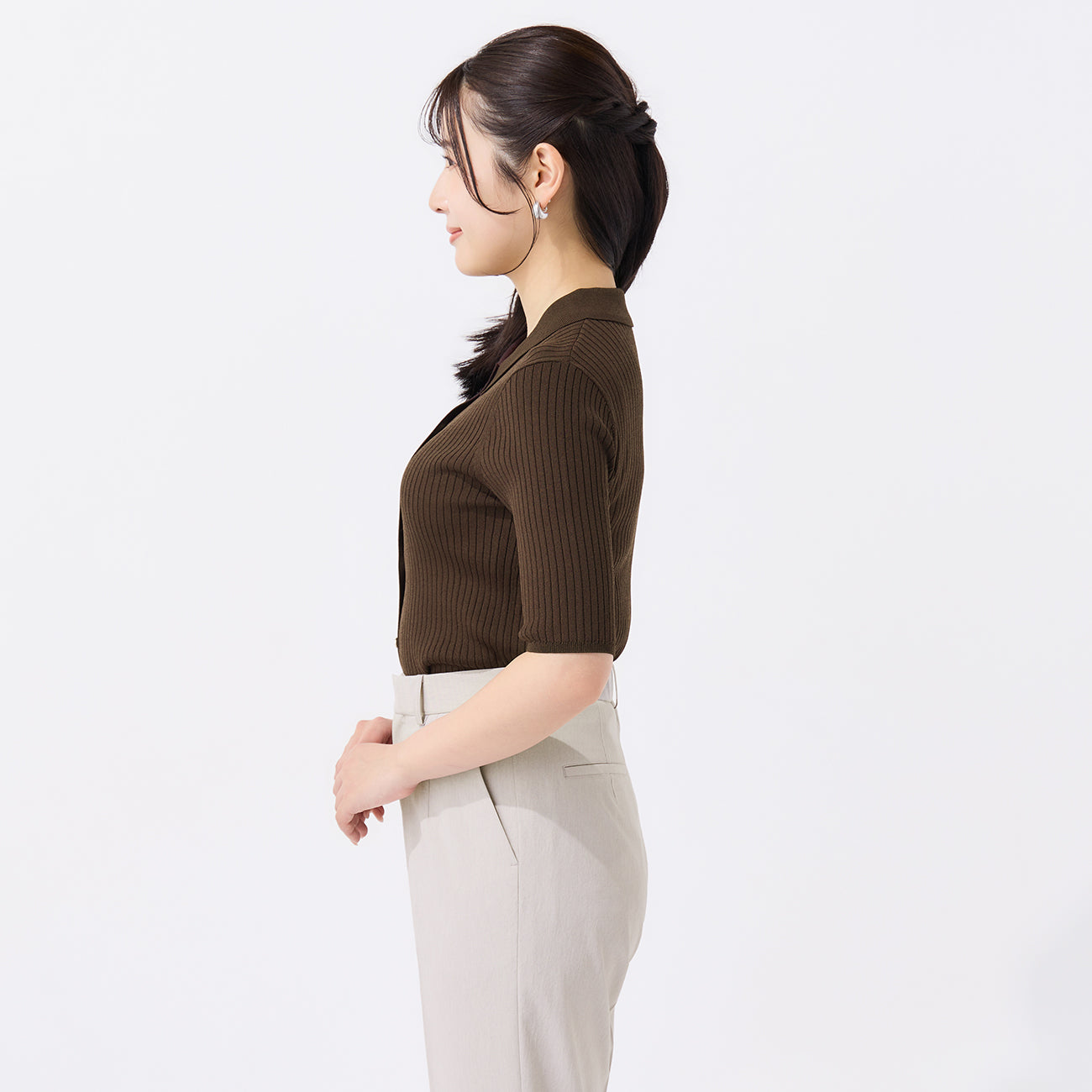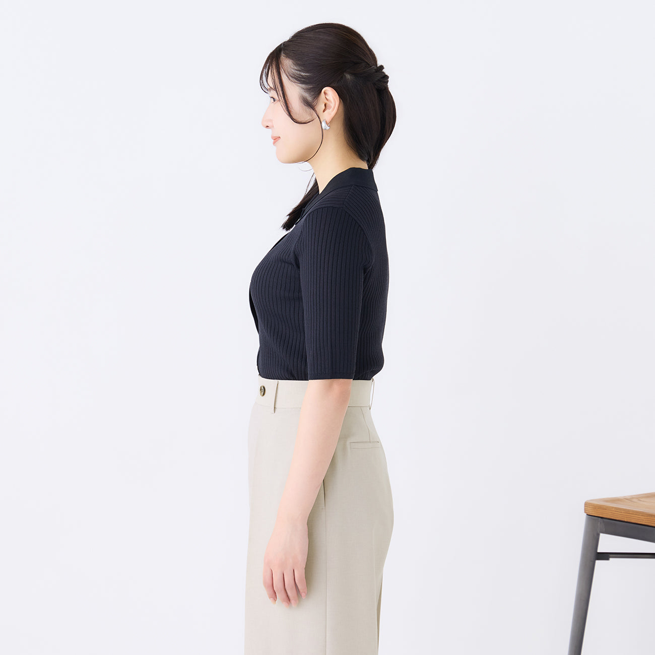・經典POLO衫設計,搭配前側金屬扣飾點綴優雅細節。材質不透光,穿著安心。