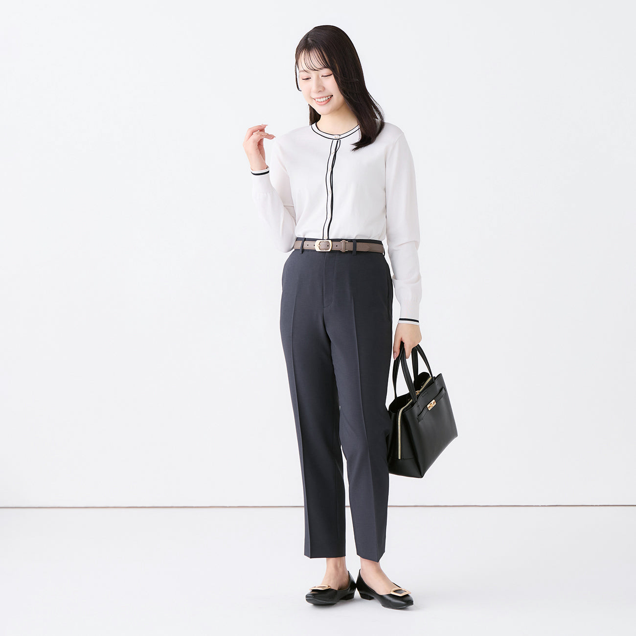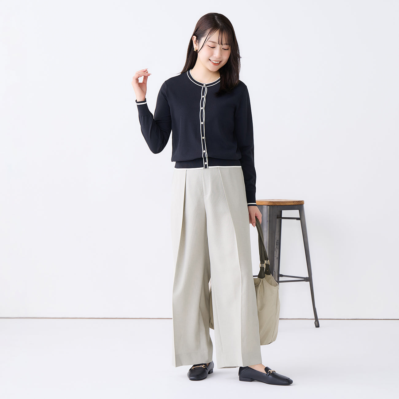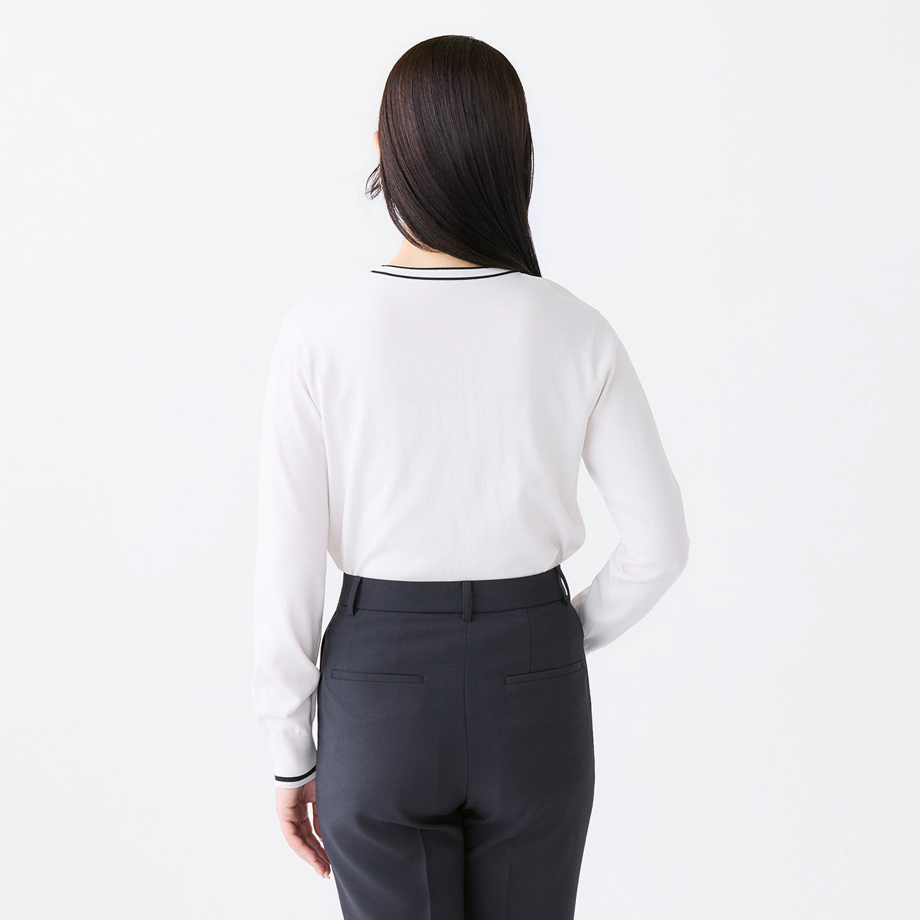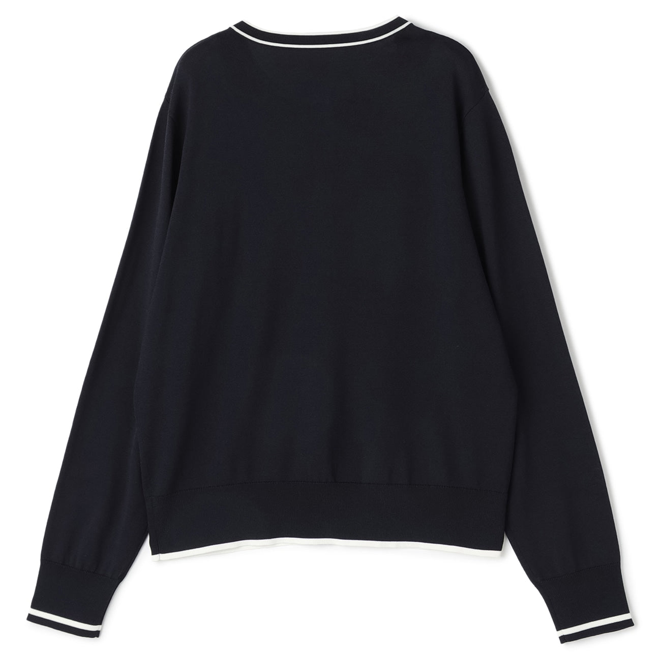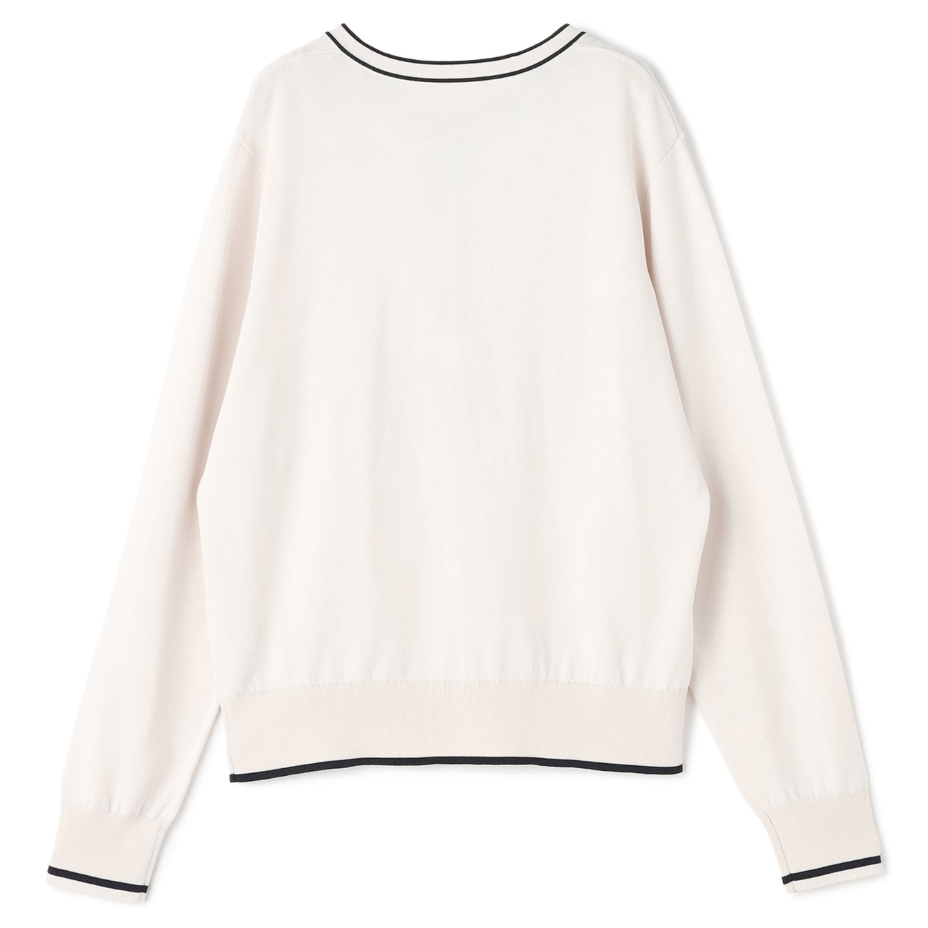 - A long-sleeved crew neck cardigan featuring sharp contrast lines, perfect for protecting against sunlight and air conditioning.
