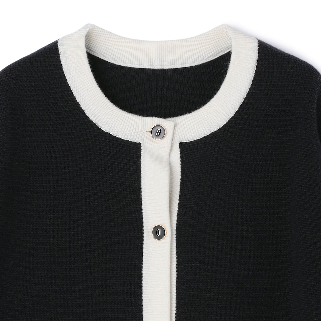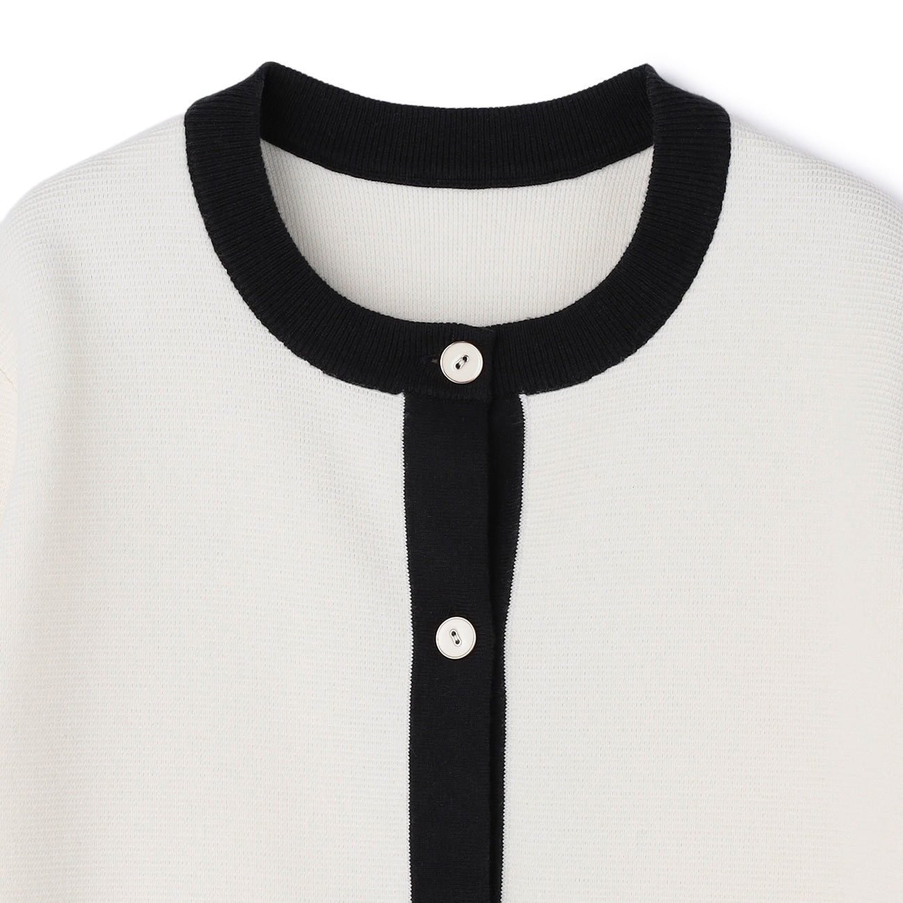 Crafted from a smooth silk blend with a subtle sheen, this seasonless piece features a flattering boxy silhouette with moderate structure that conceals body lines, highlighted by a sophisticated bicolor design and contrasting buttons.