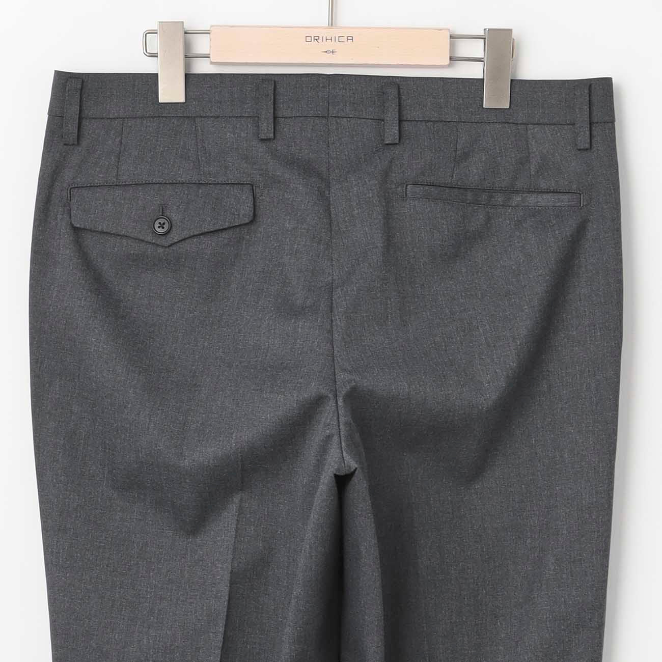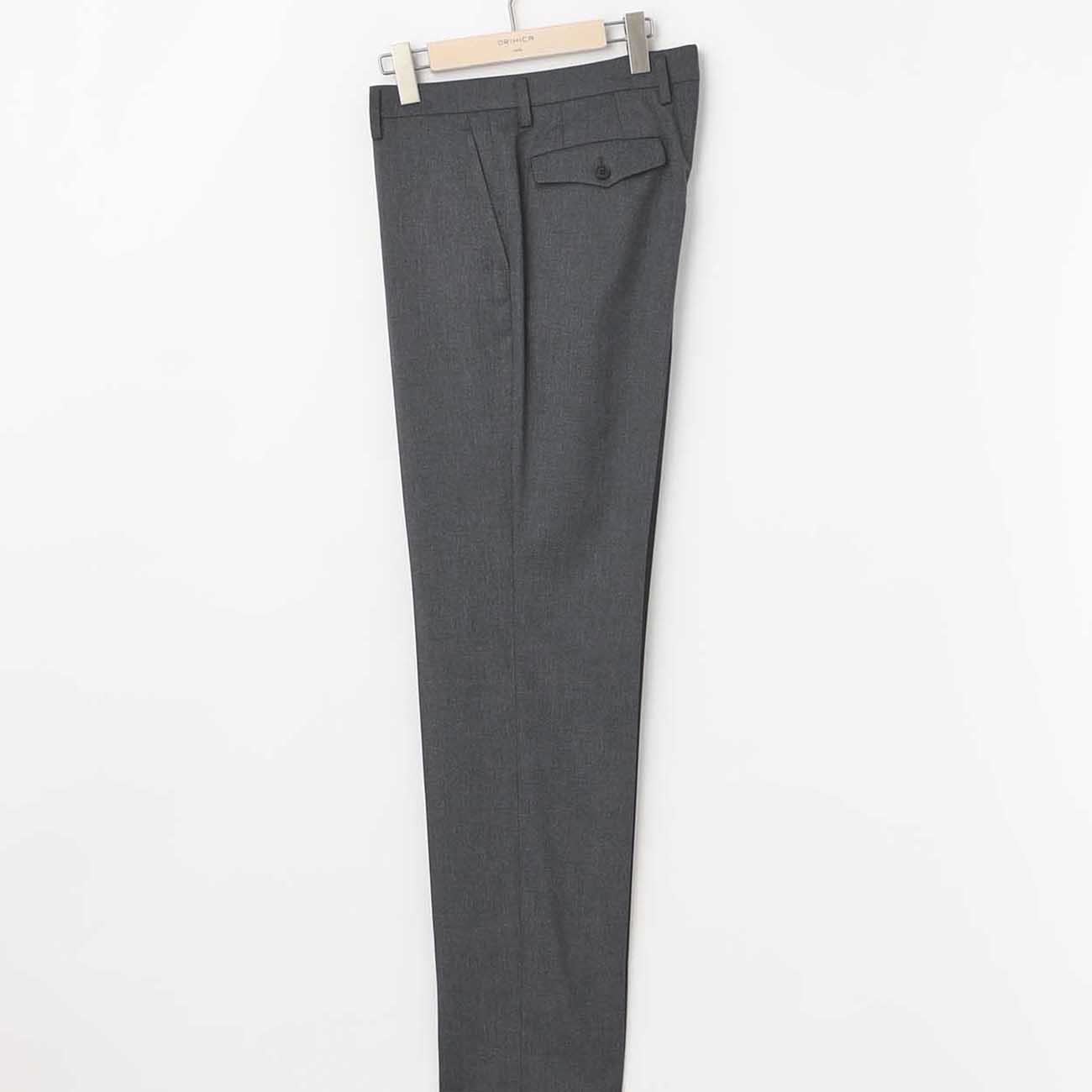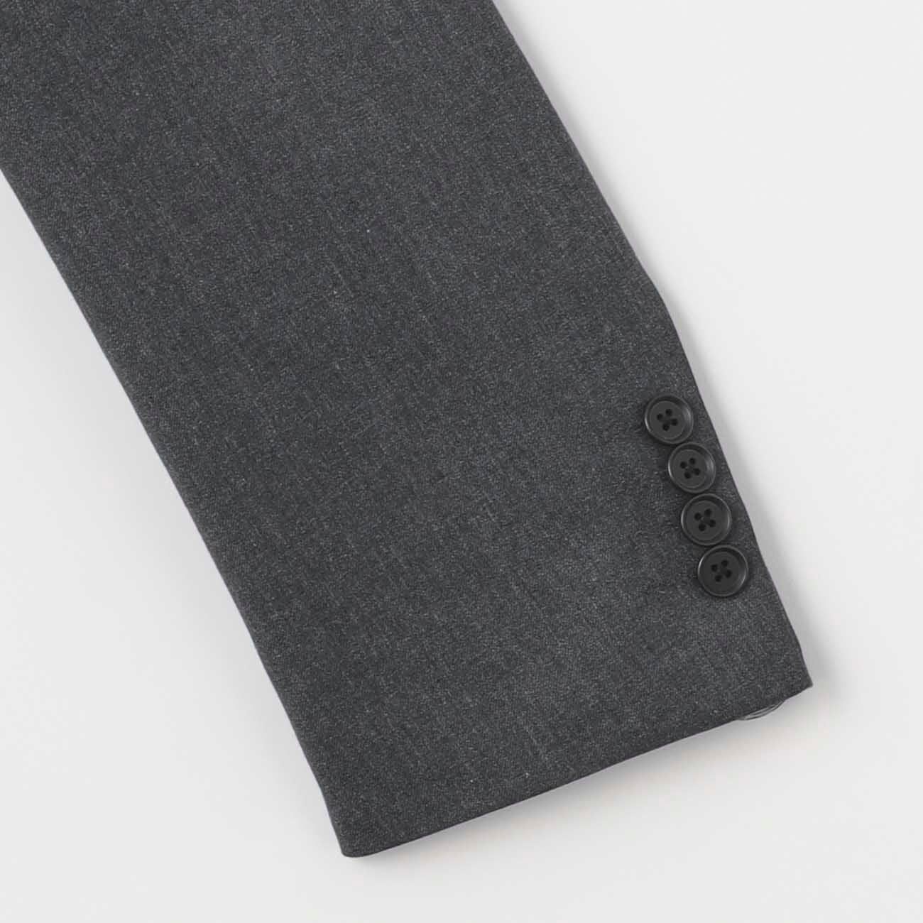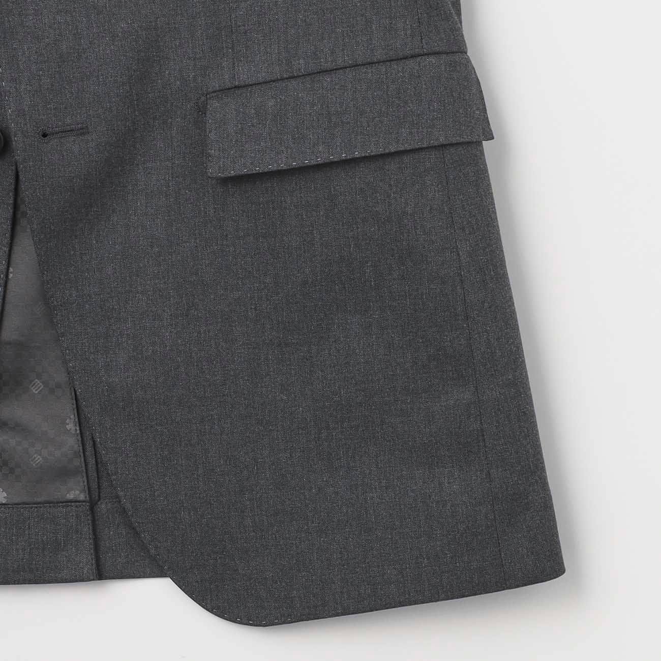 - Center vent, decorative sleeve buttons, half-lined, flat front pants.