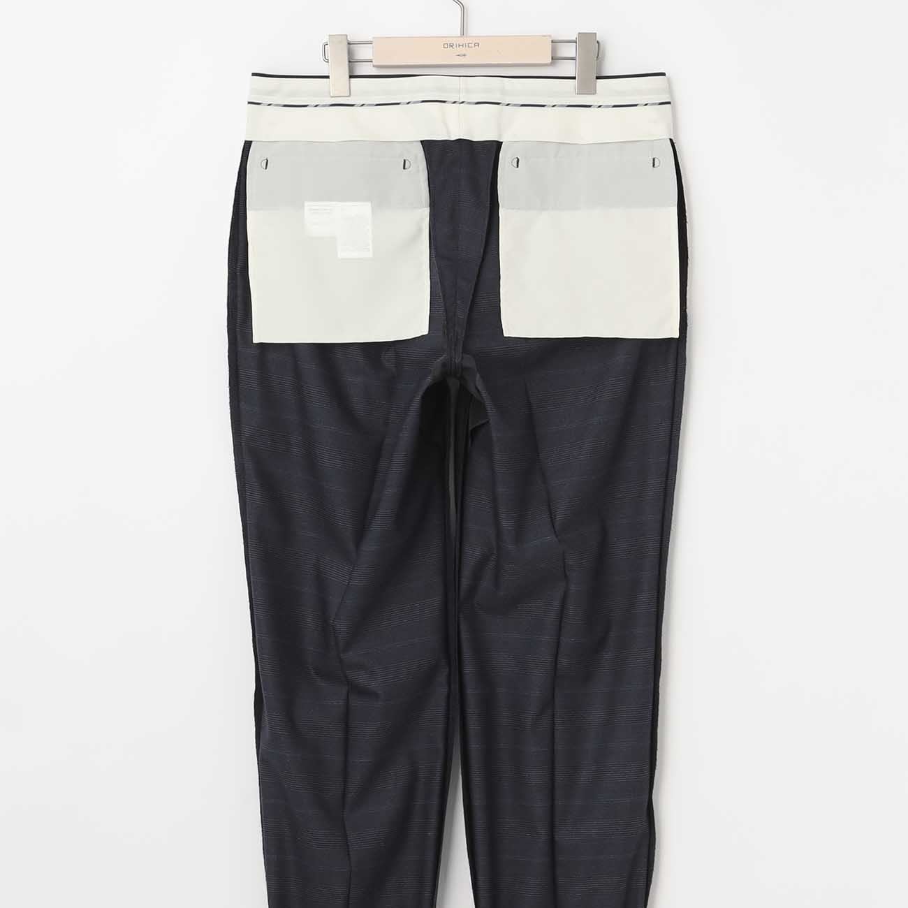 请注意:裤脚须另行包边车缝,请依个人需求修改。