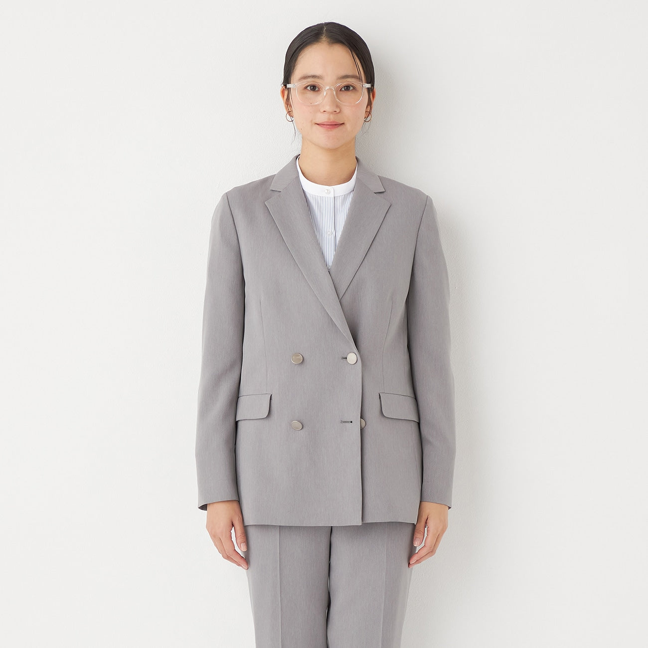 THE THIRD SUITS RIRANCHA Stretch Double-Breasted Jacket - Light Gray