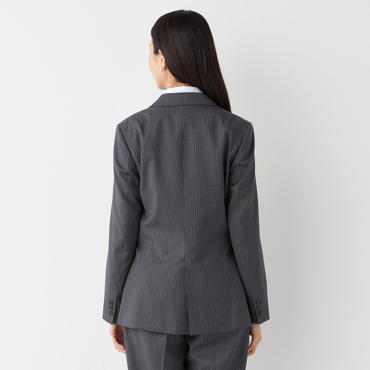 LUXE Line REDA Stripe Long Jacket - Medium Gray