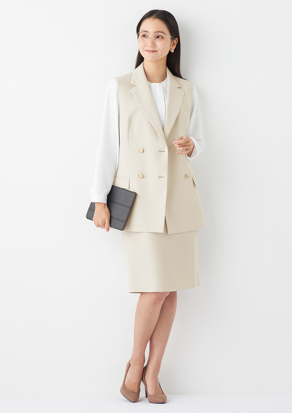 THE THIRD SUITS Double Cloth Vest - Beige