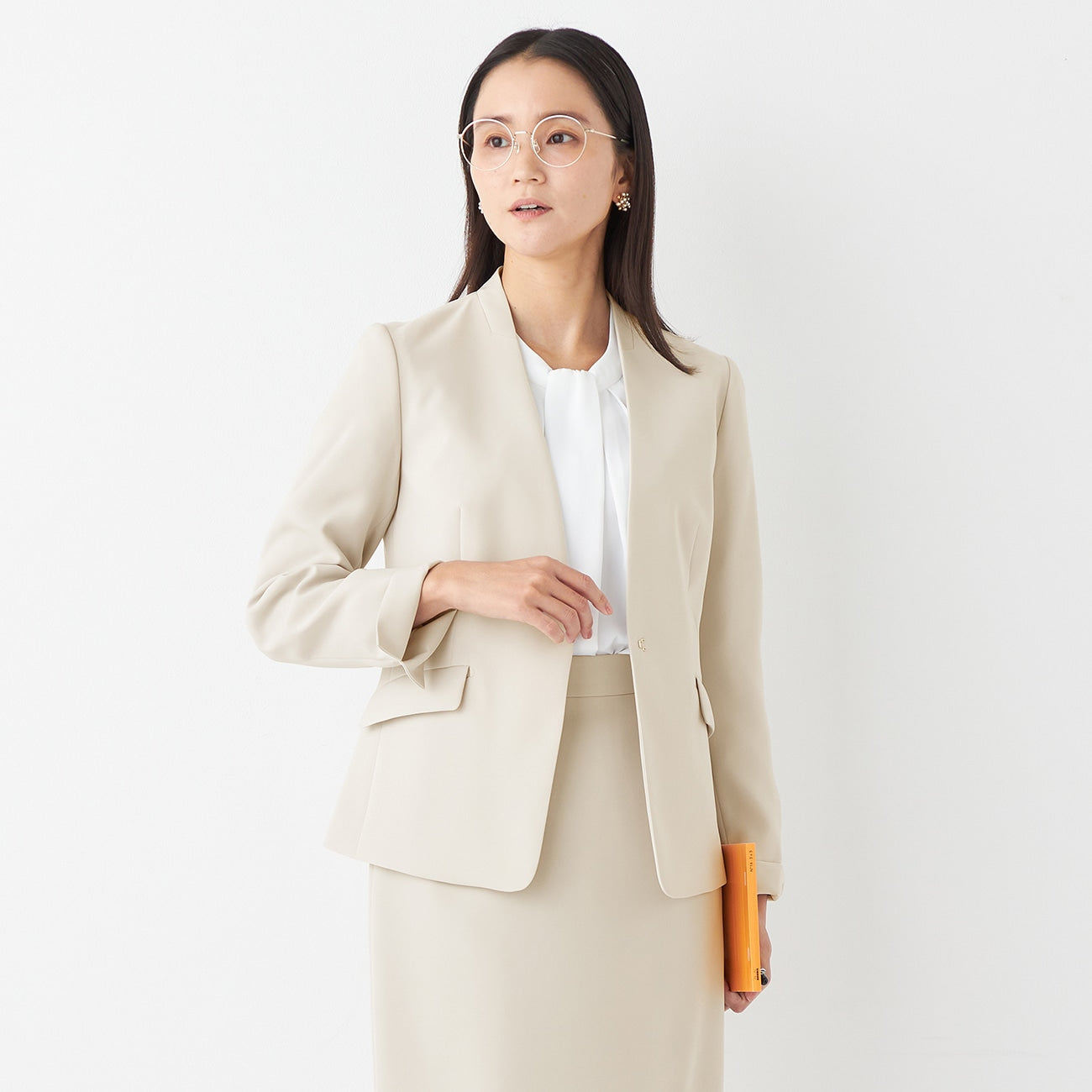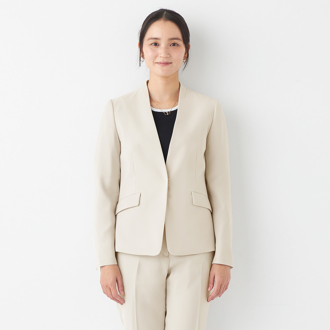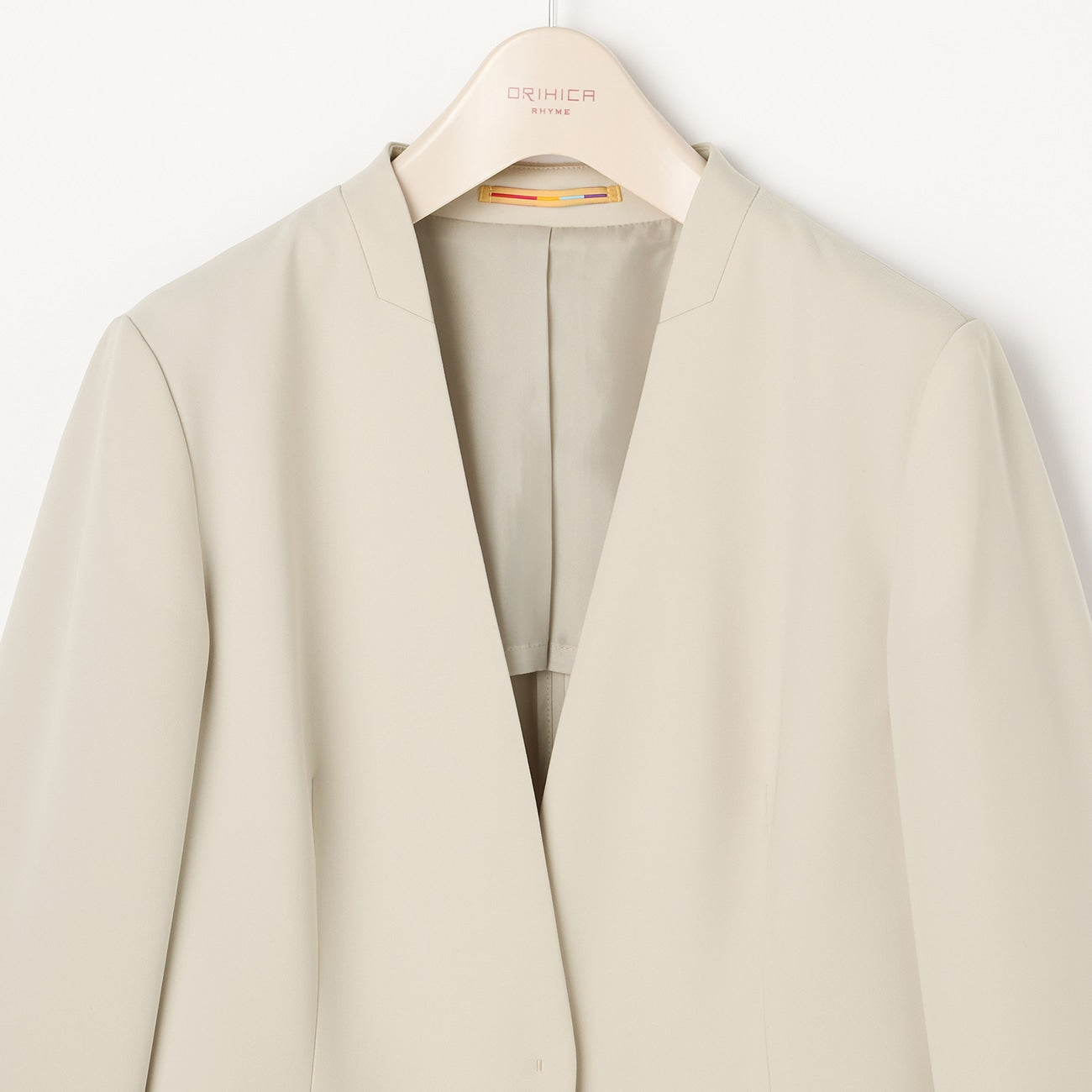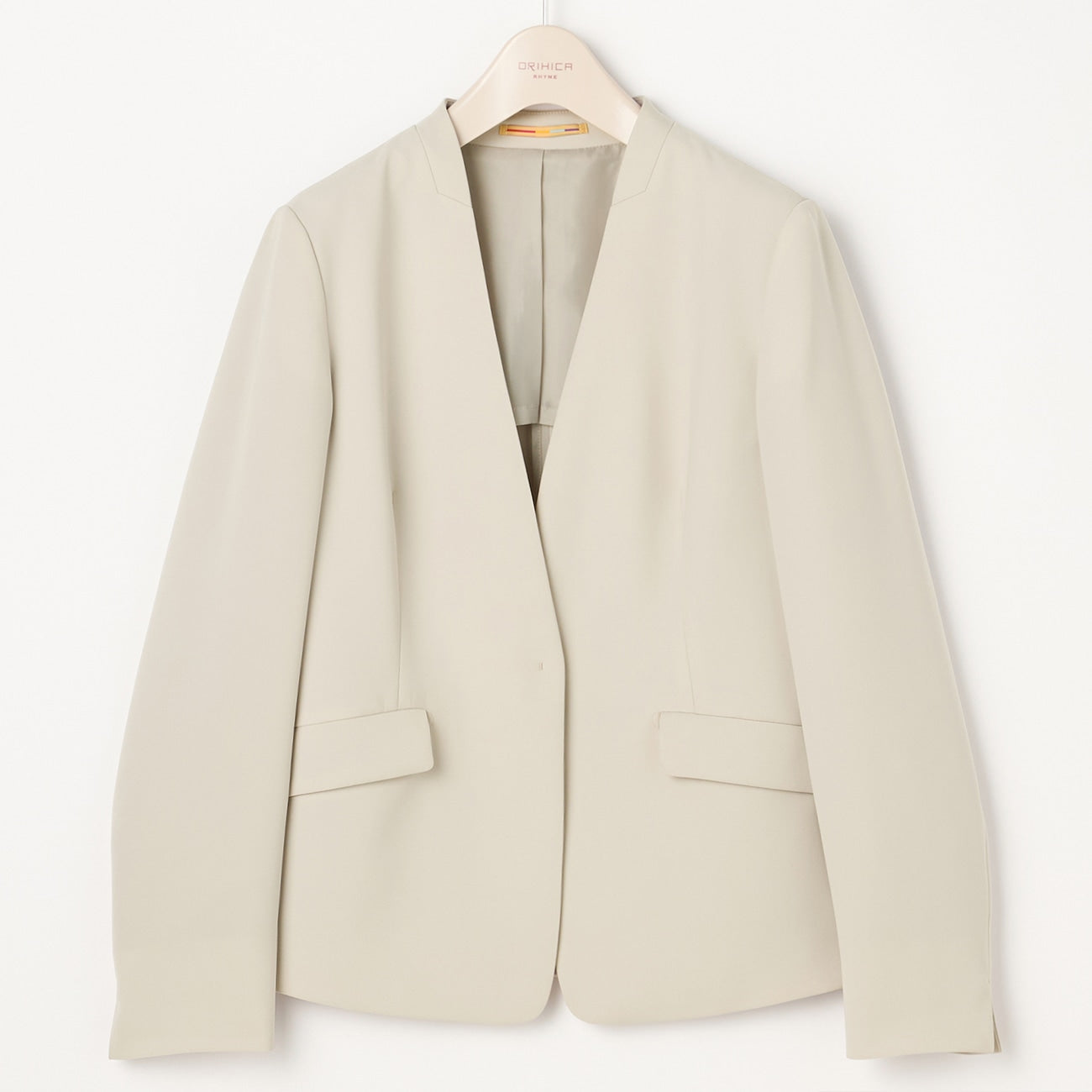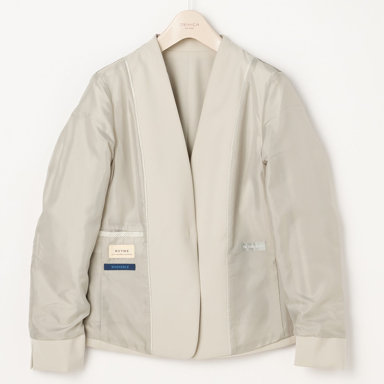 THE THIRD SUITS Double Cloth Collarless Jacket - Beige