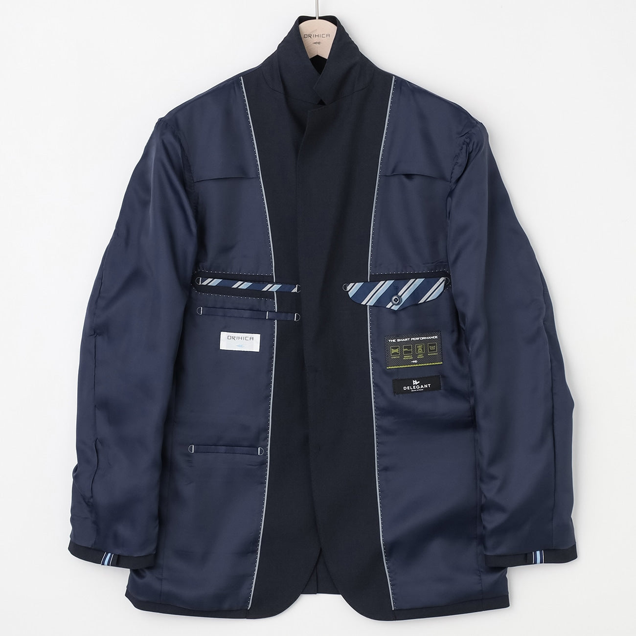 - Tailored at a suit factory for a three-dimensional fit that looks neat.