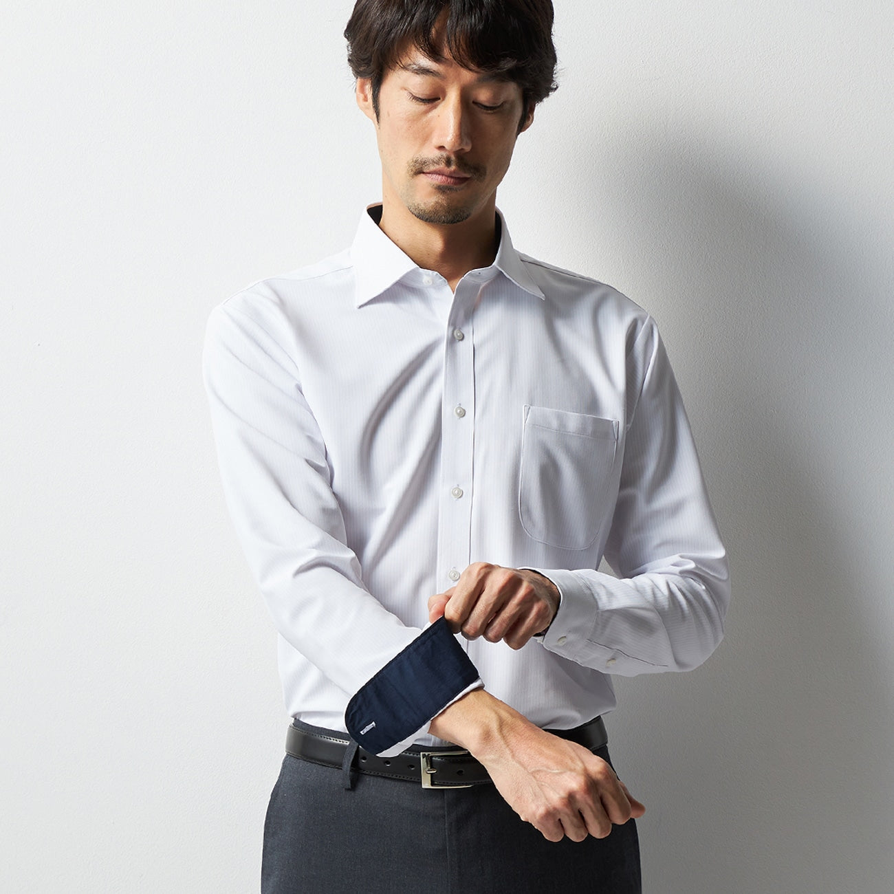 - Uses special yarn that makes sweat stains hard to notice. It refracts light to make stains less visible and diffuses absorbed moisture so the water content is thin and dries easily, making sweat stains less noticeable.